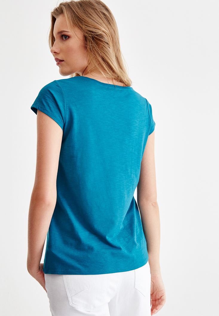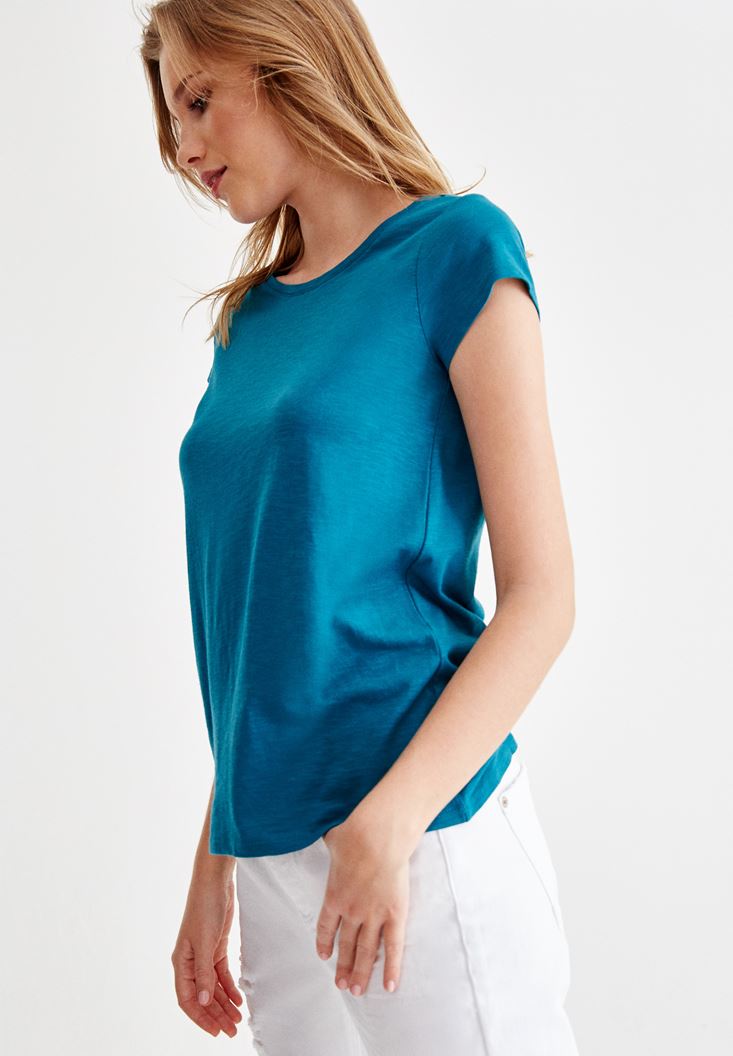 Mavi Sıfır Yaka Basic Tişört