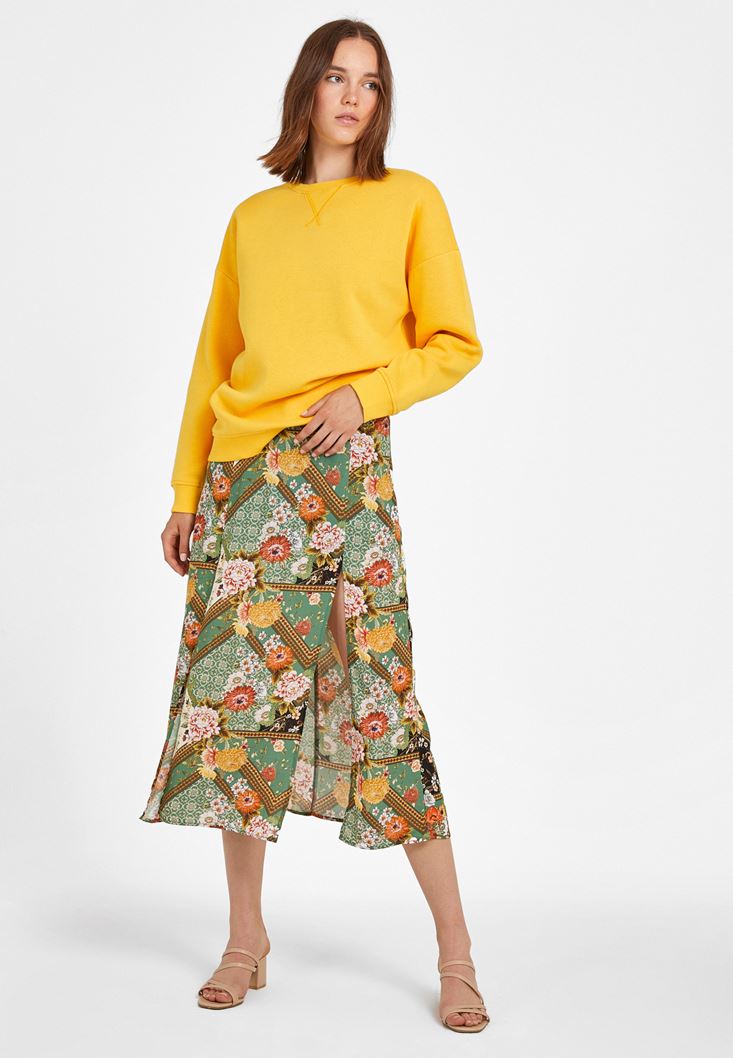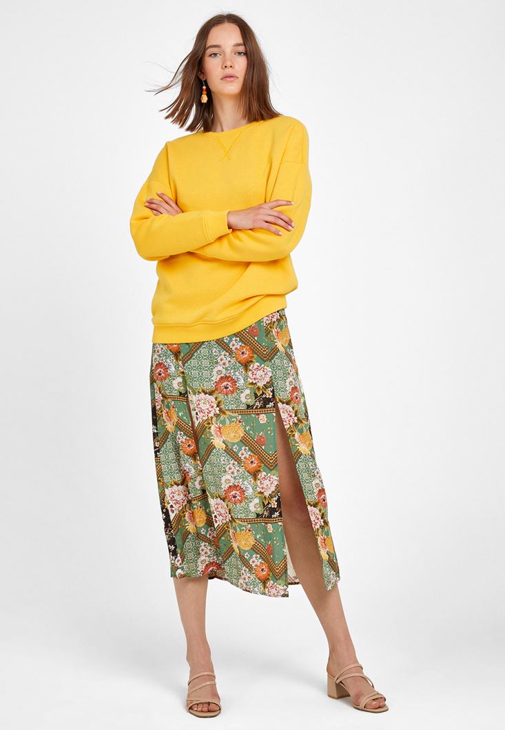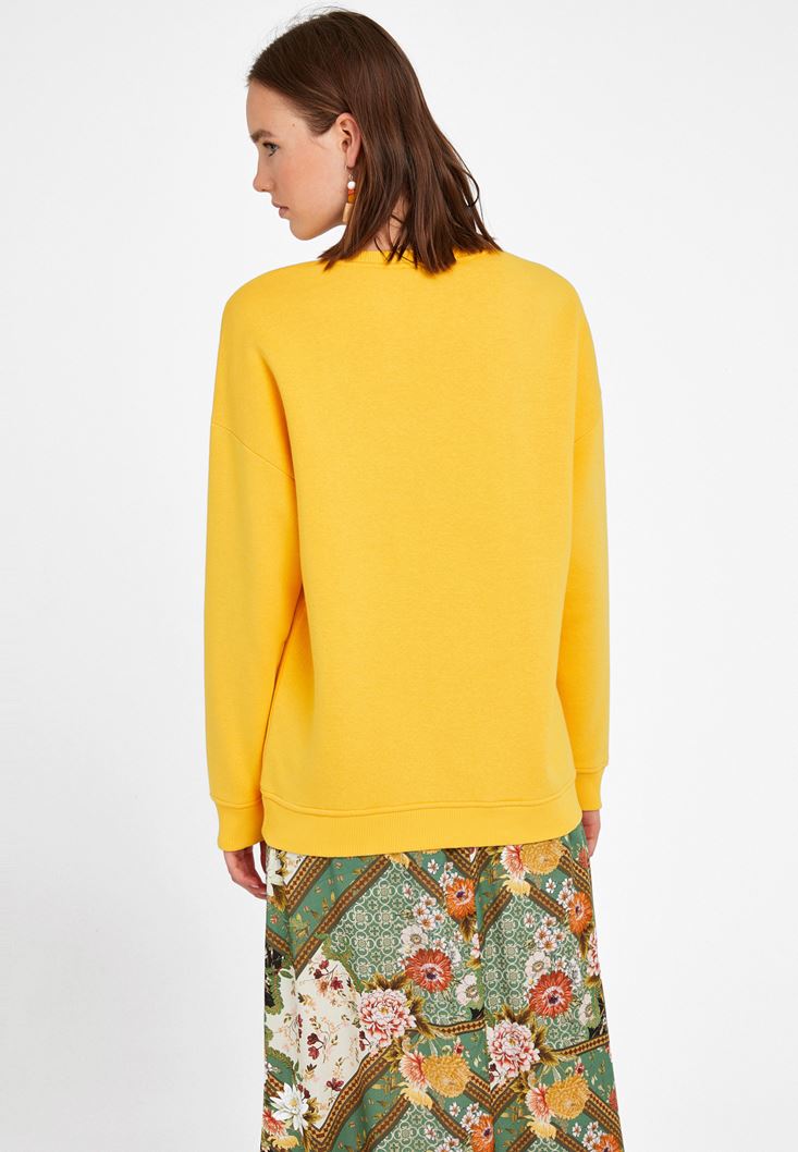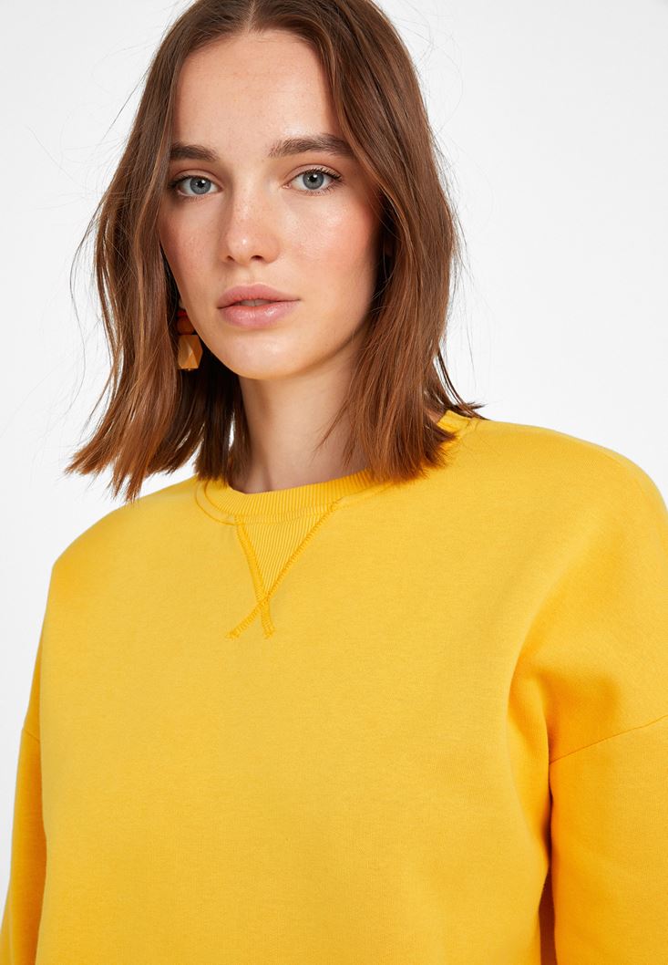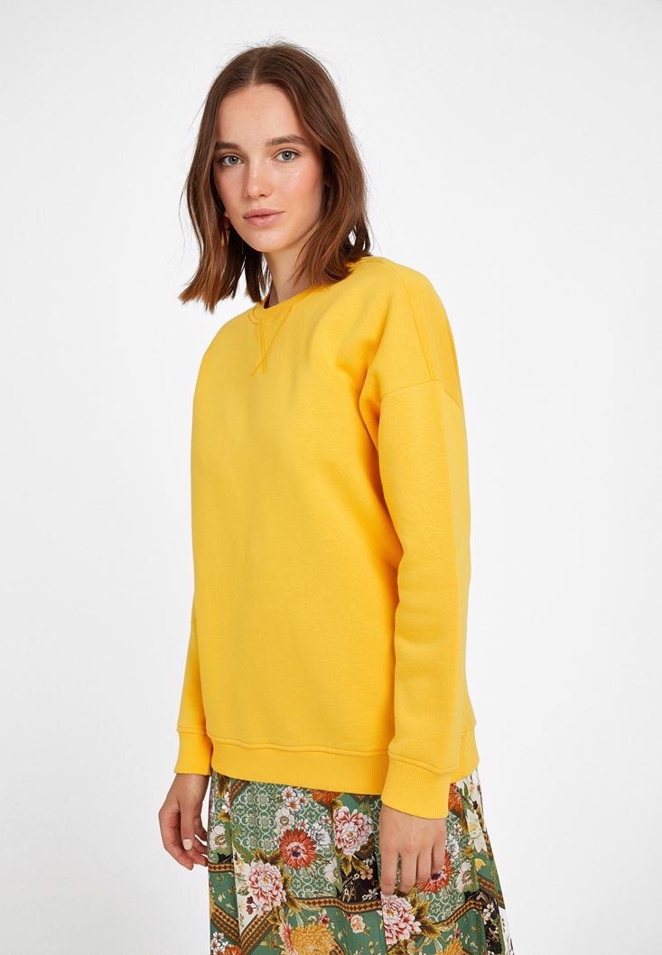 • Bayan Sarı Sıfır Yaka Bol Kesim Sweatshirt