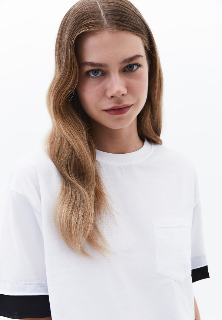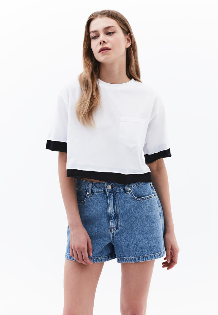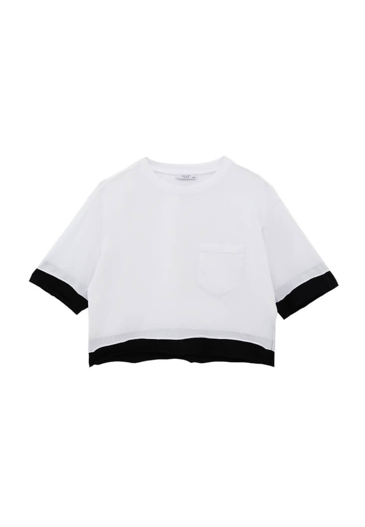 • Bayan Beyaz Sıfır Yaka Crop Tişört