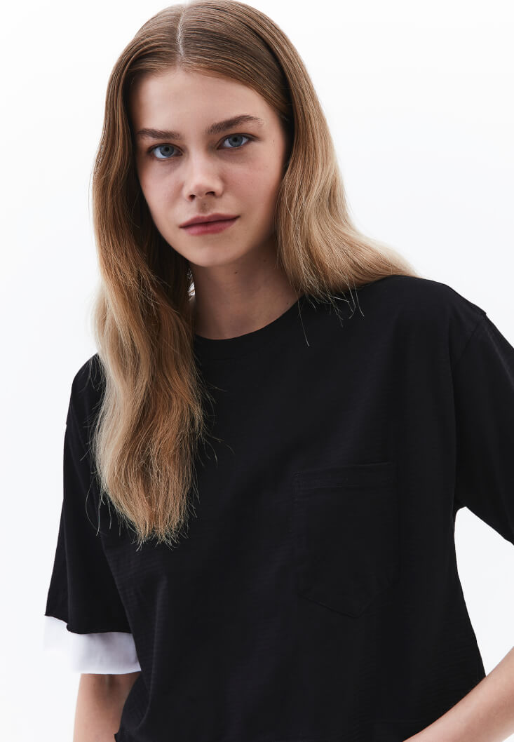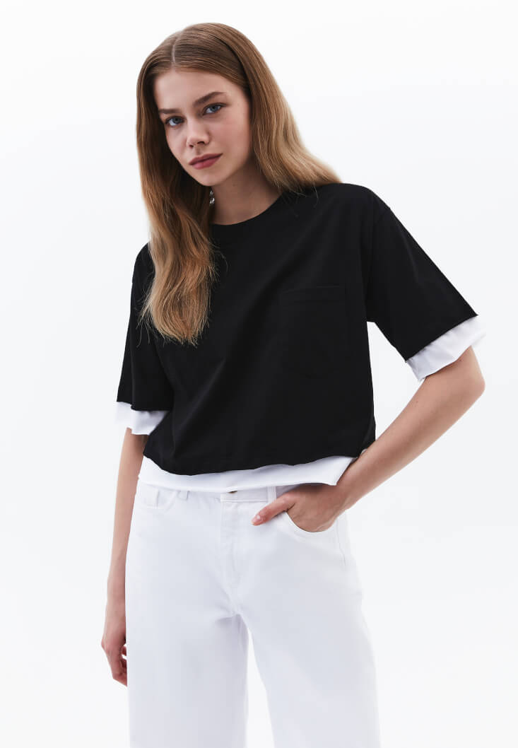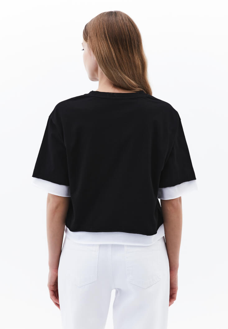 • Bayan Siyah Sıfır Yaka Crop Tişört