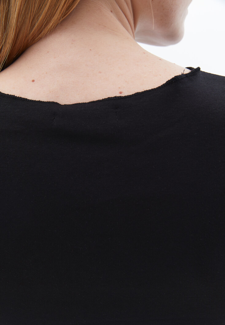 • Bayan Siyah Sıfır Yaka Crop Tişört