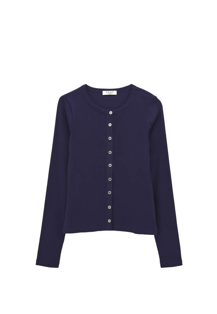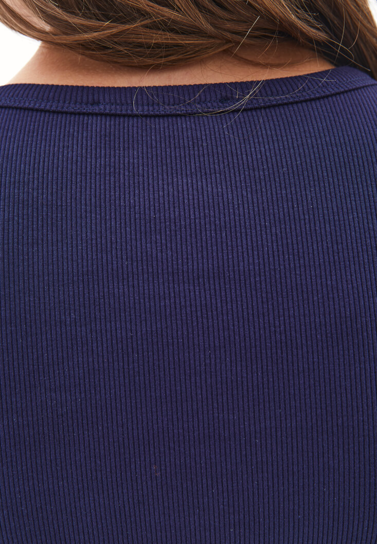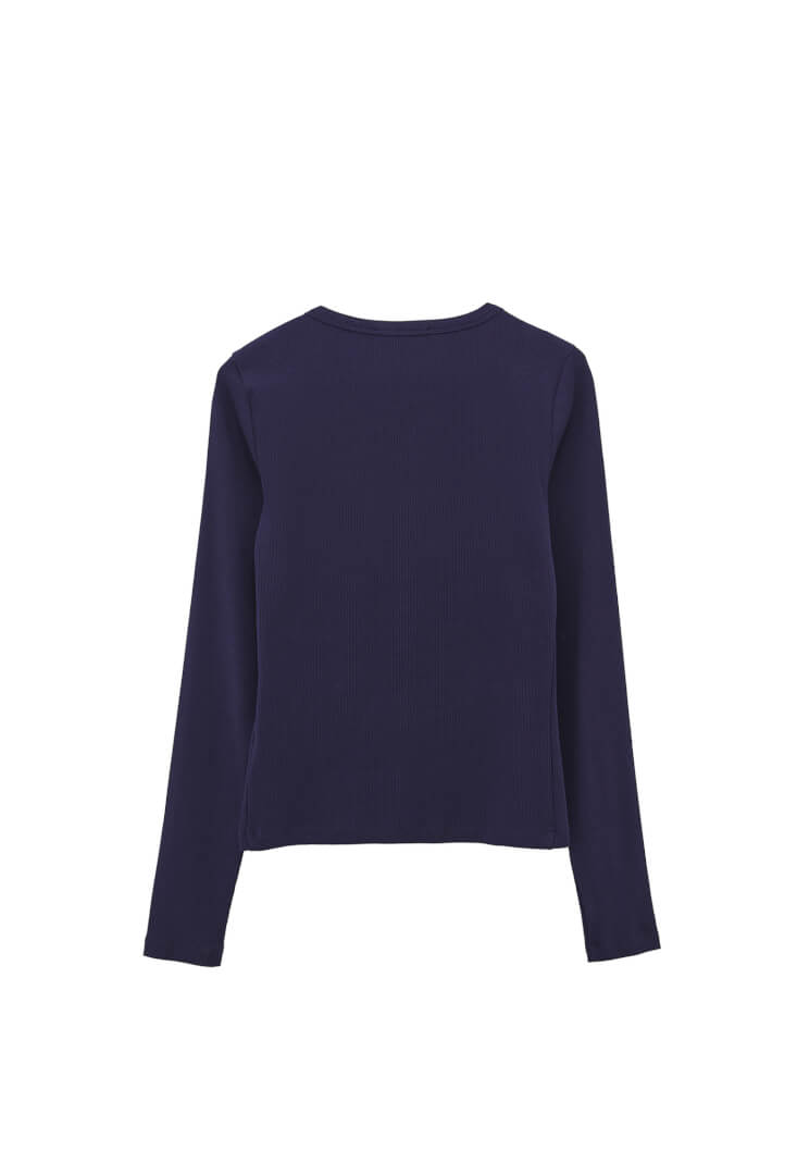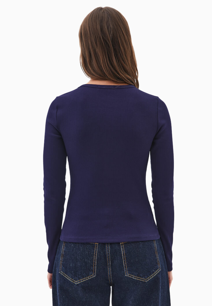 • Bayan Lacivert Sıfır Yaka Düğmeli Tişört
