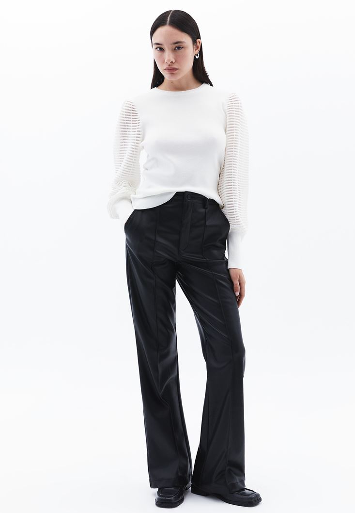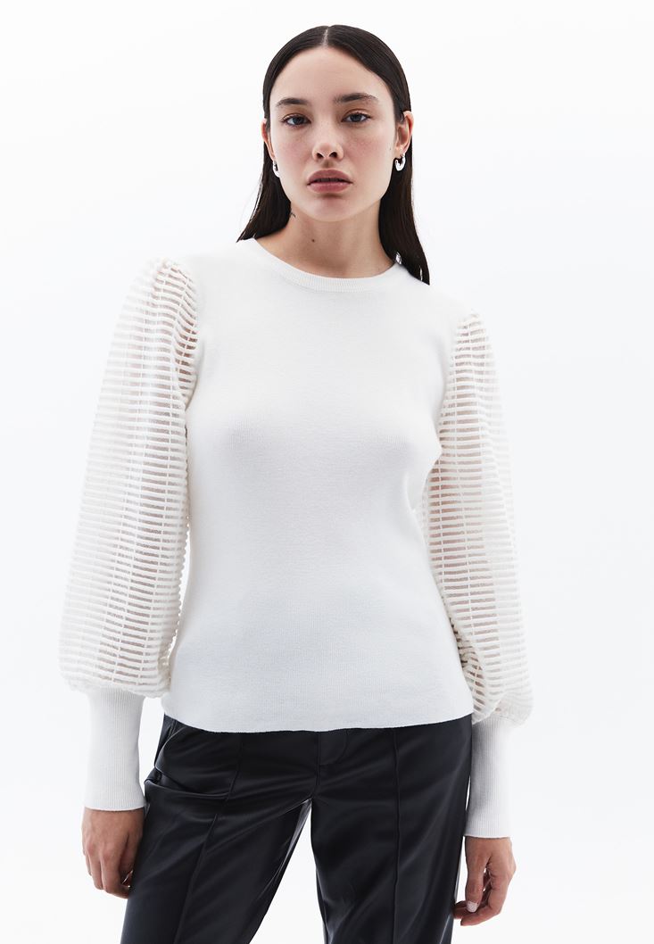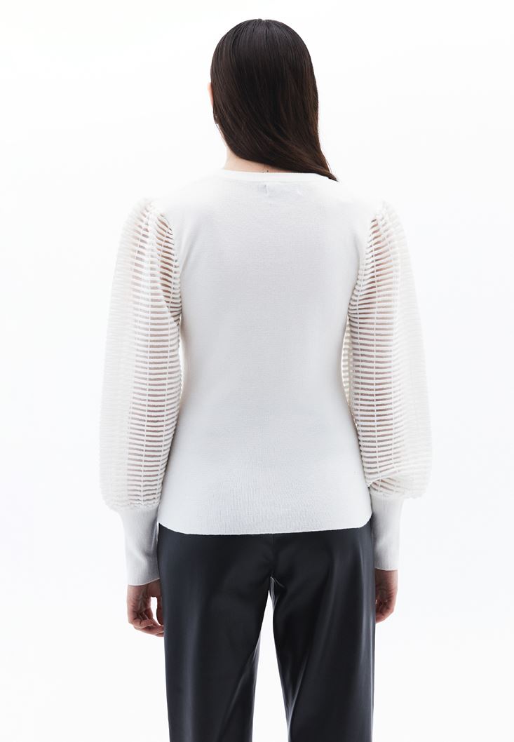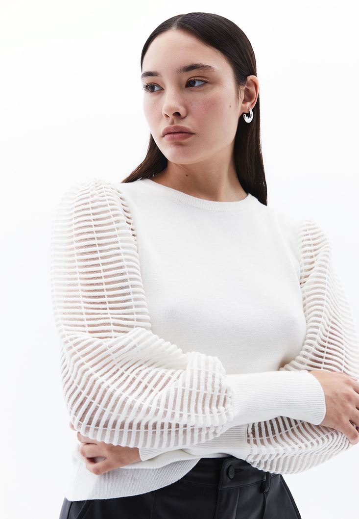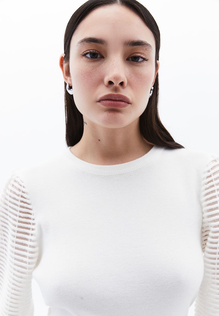 • Bayan Krem Sıfır Yaka Kol Detaylı Kazak