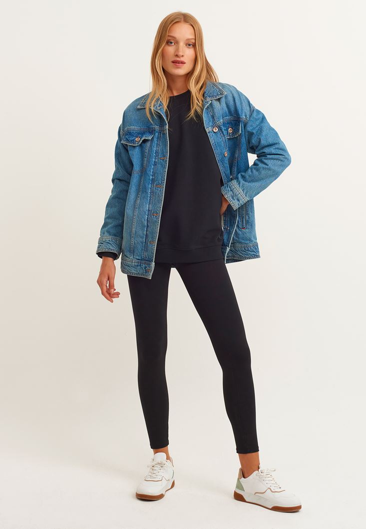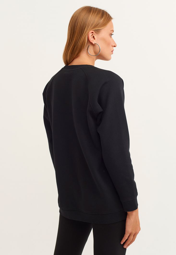 • Bayan Siyah Sıfır Yaka Oversize Sweatshirt