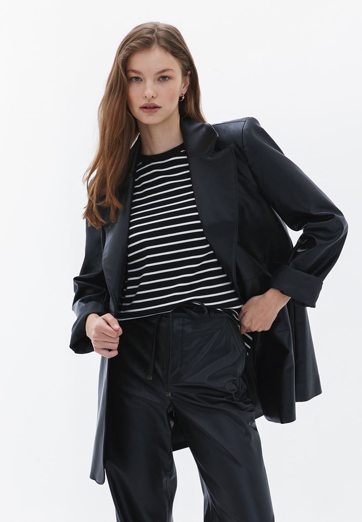 • Bayan Siyah/Beyaz Sıfır Yaka Pamuklu Tişört