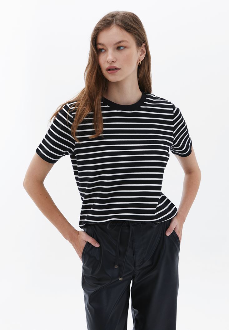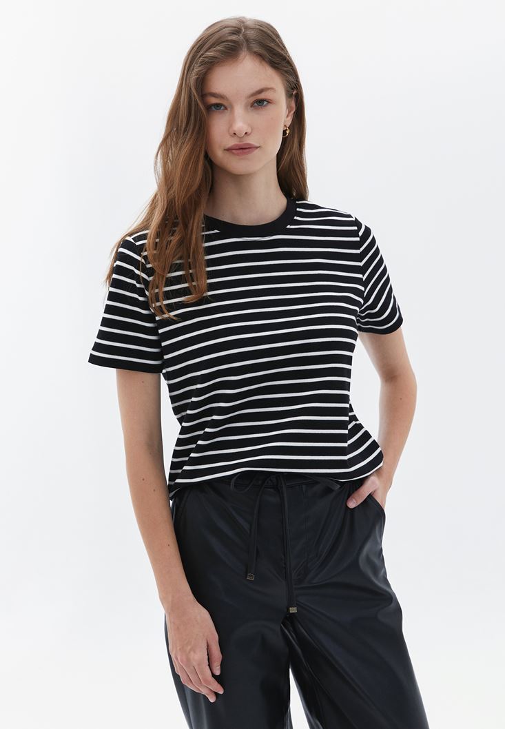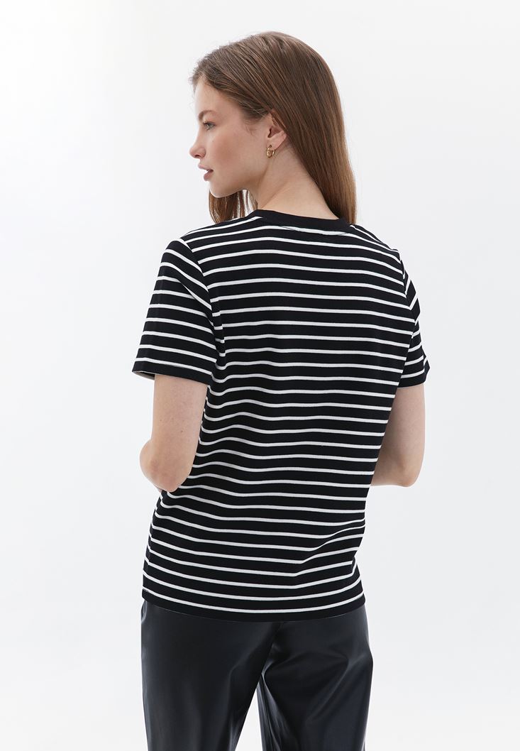 Siyah/Beyaz Sıfır Yaka Pamuklu Tişört
