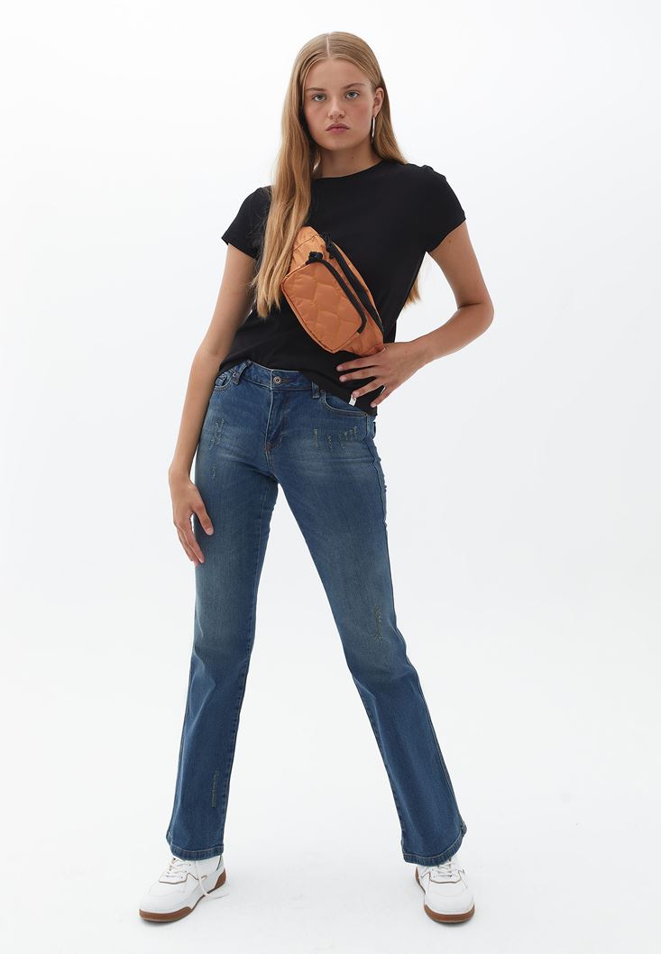 Sıfır Yaka Tişört ve Flare Pantolon Komini