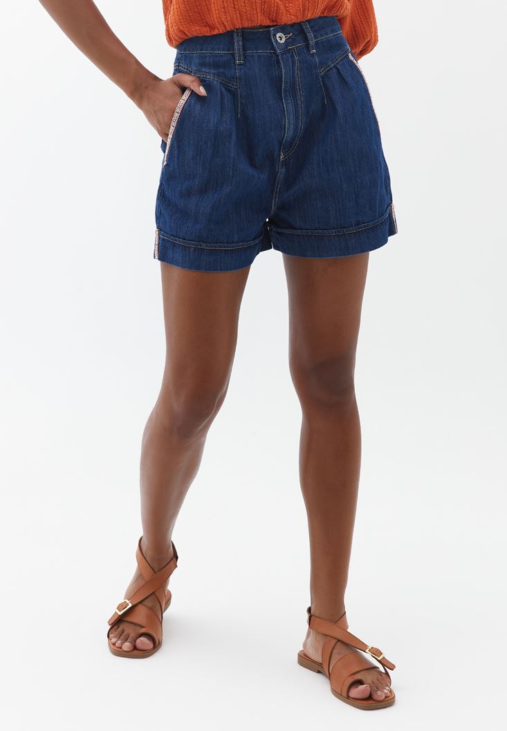 Denim Şort ve Tek Omuzlu Bluz Kombini