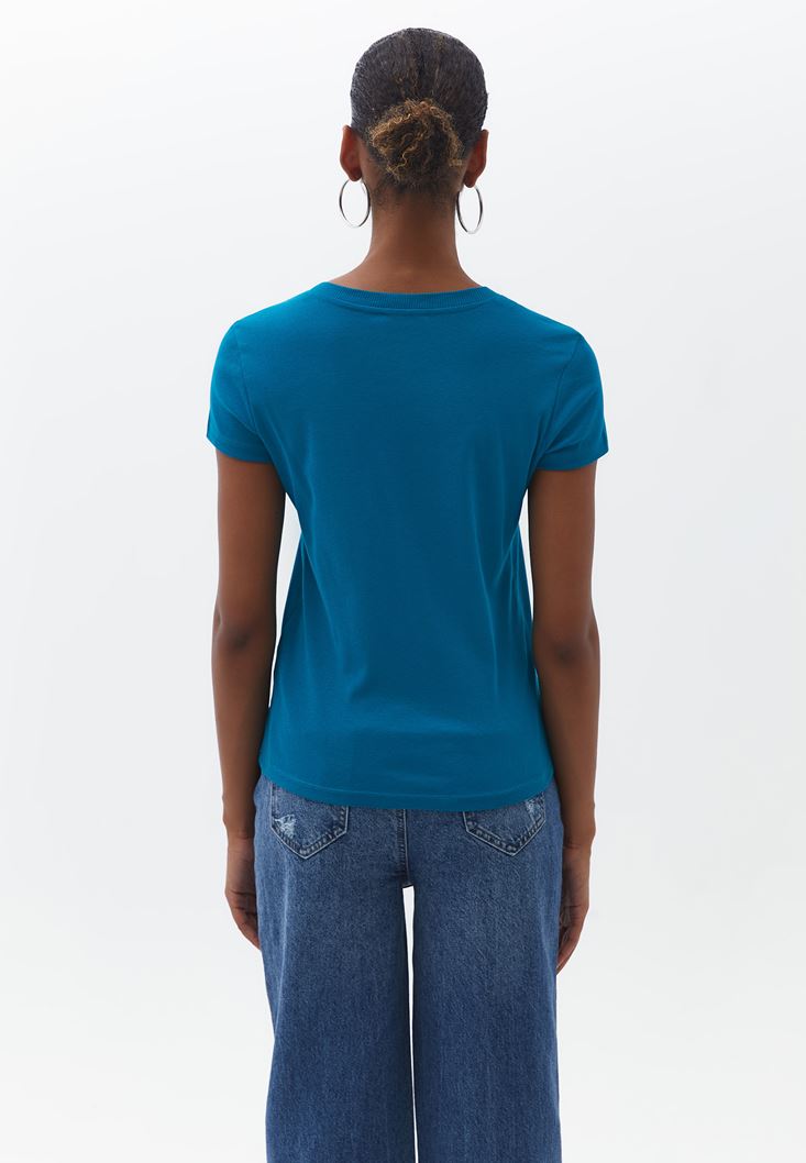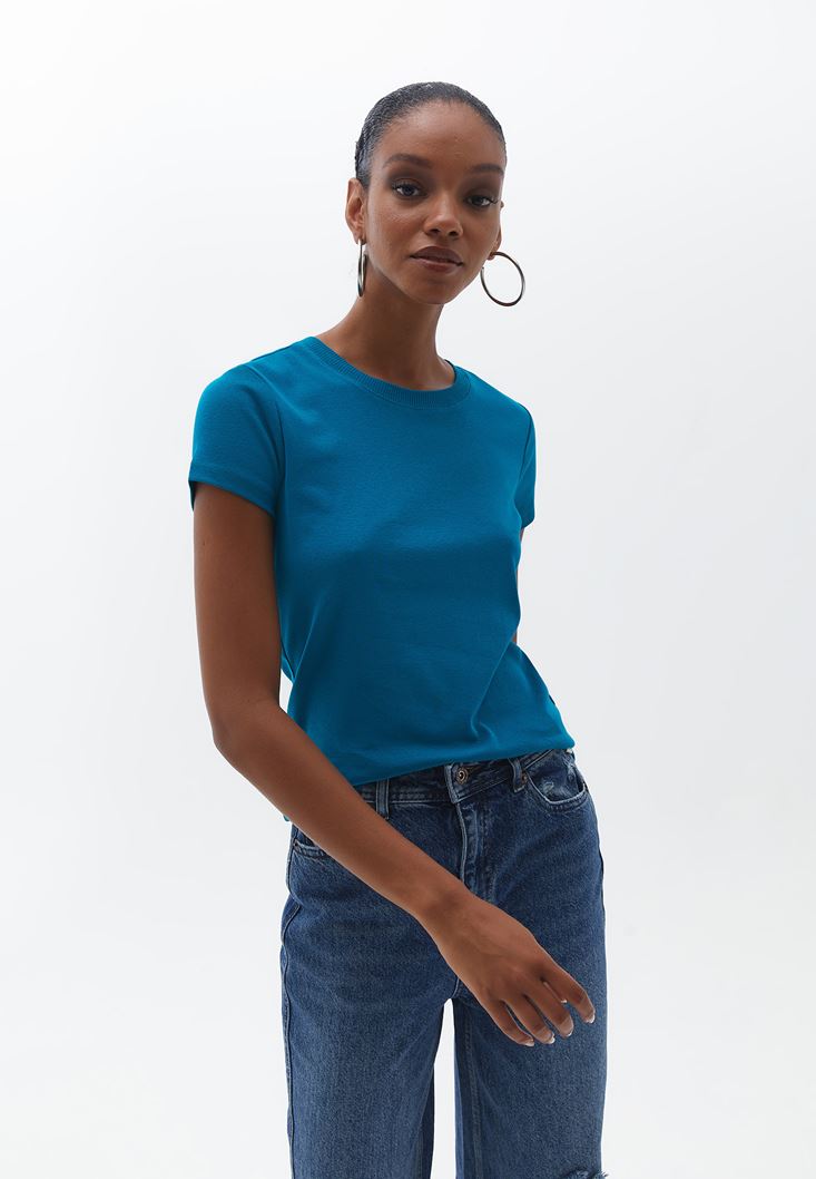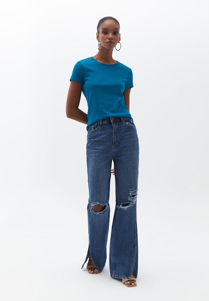 Sıfır Yaka Tişört ve Yüksek Bel Denim Pantolon Kombini
