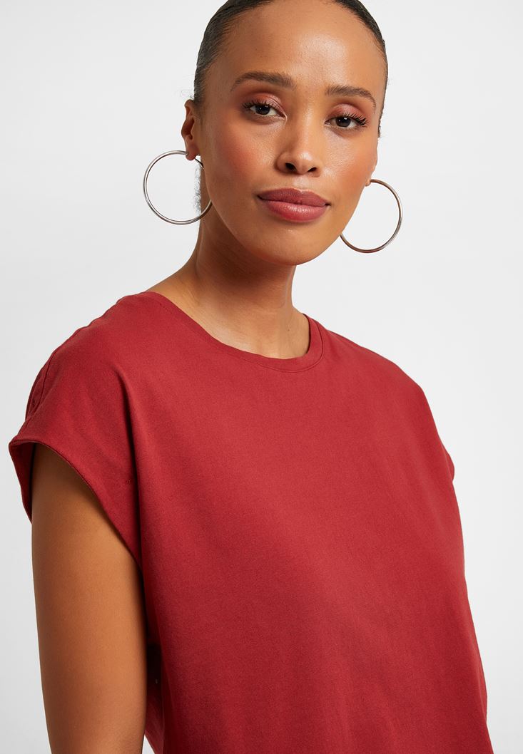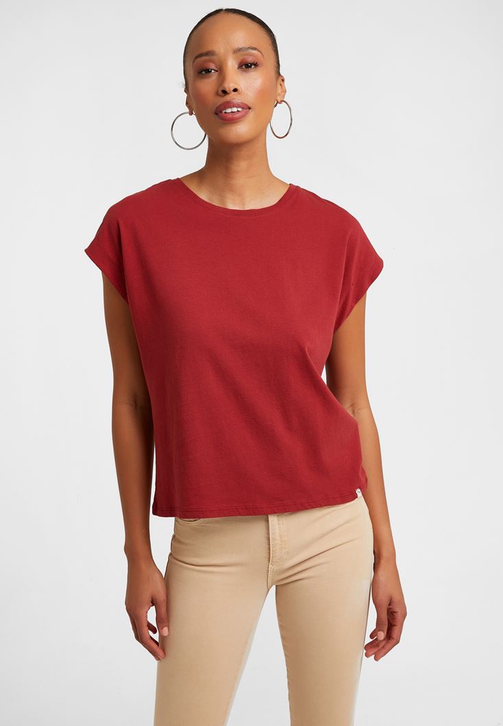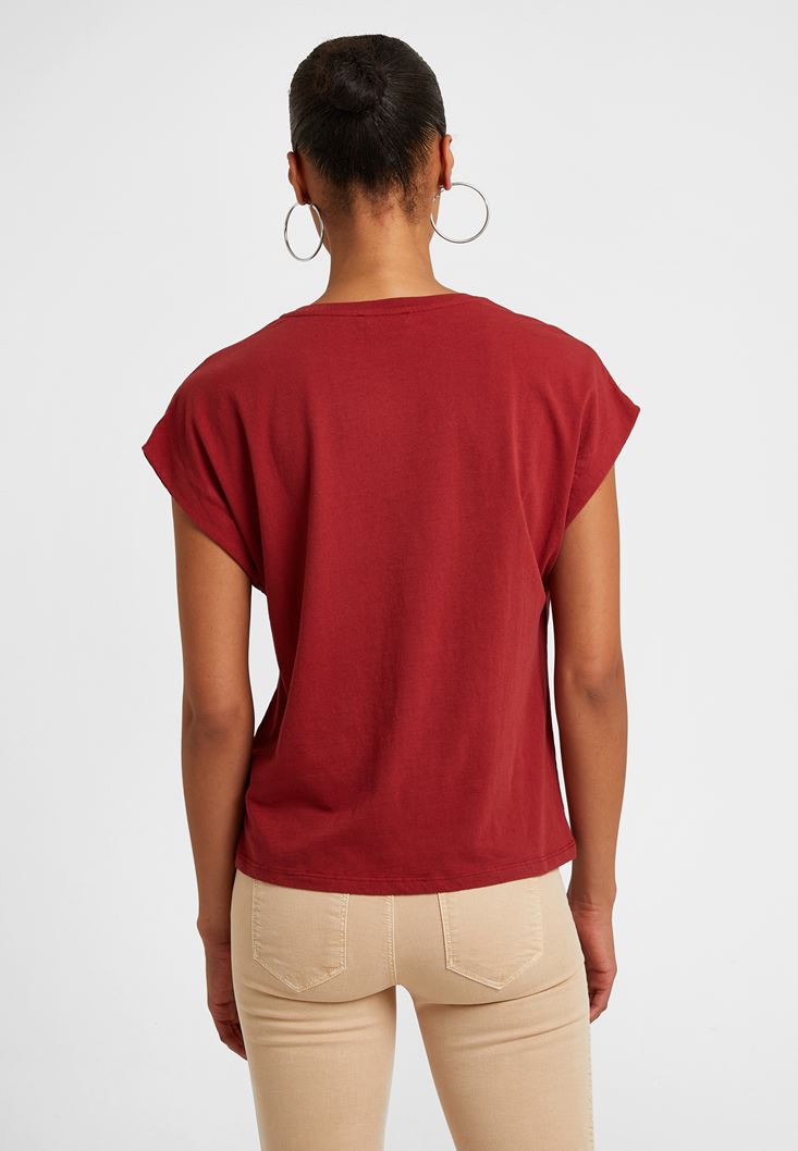 Bordo Sıfır Yaka Tişört