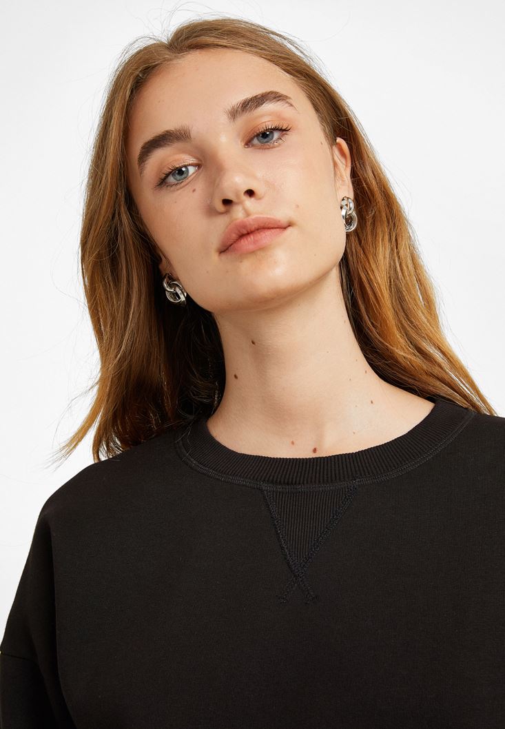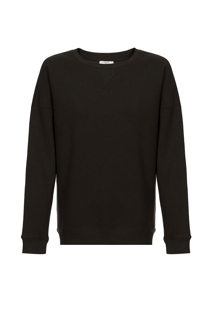 Siyah Sıfır Yaka Uzun Kollu Sweatshirt