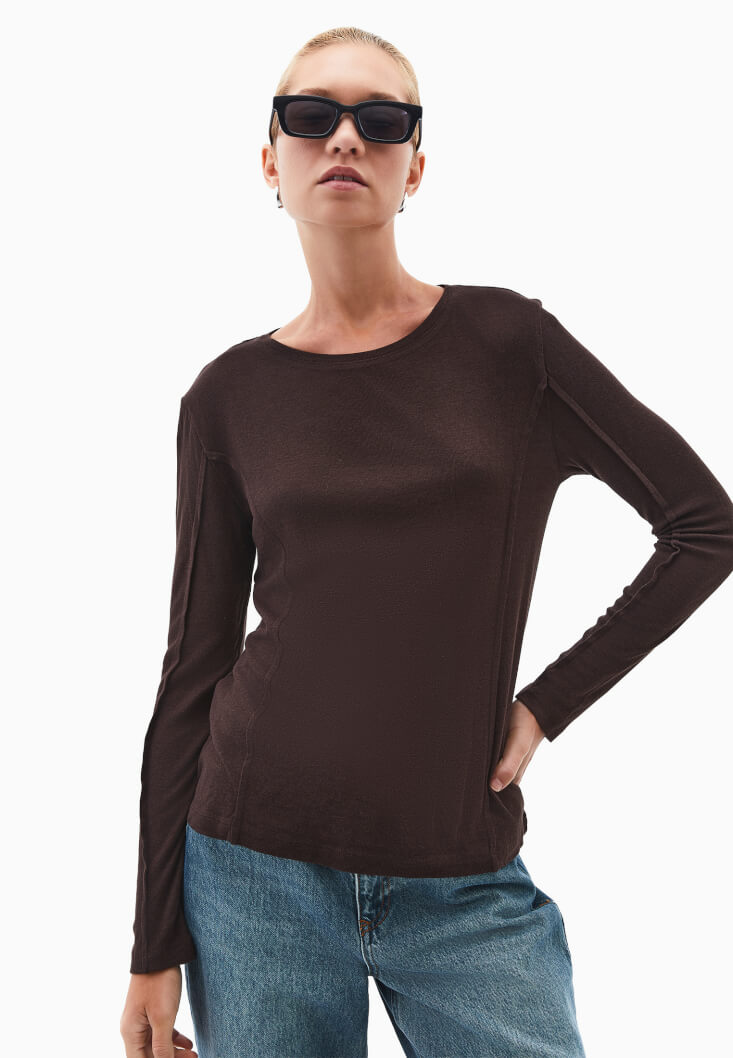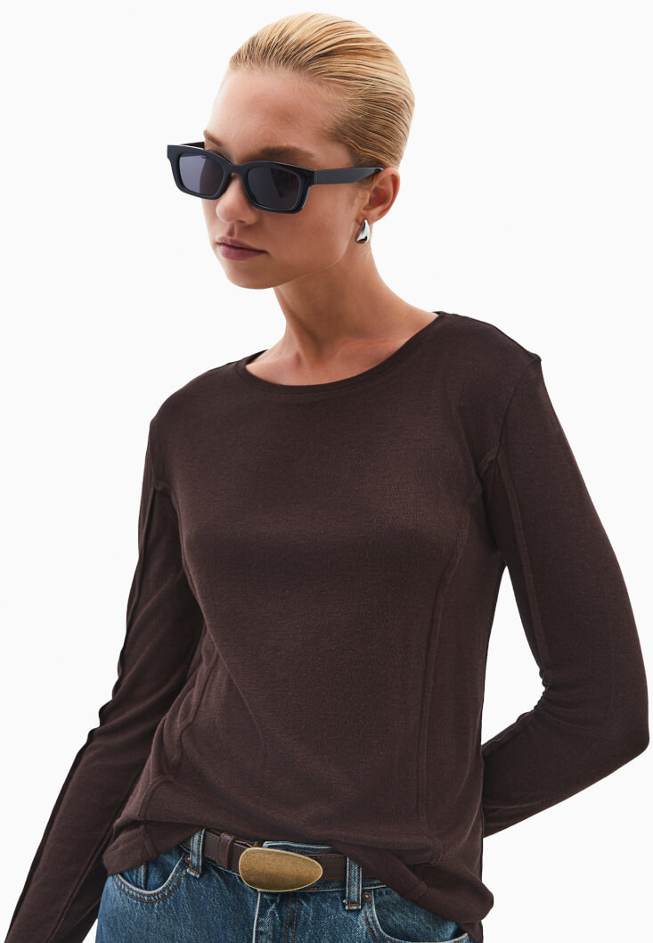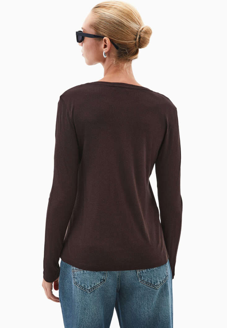 • Bayan Kahverengi Sıfır Yaka Uzun Kollu Tişört