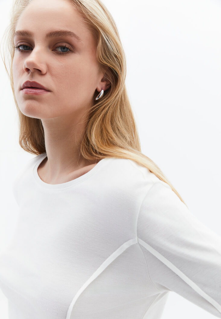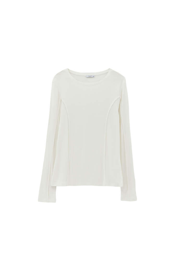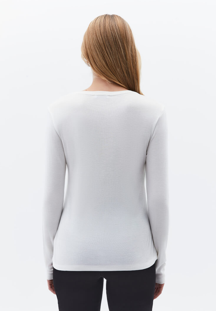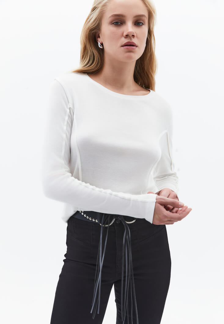 • Bayan Krem Sıfır Yaka Uzun Kollu Tişört