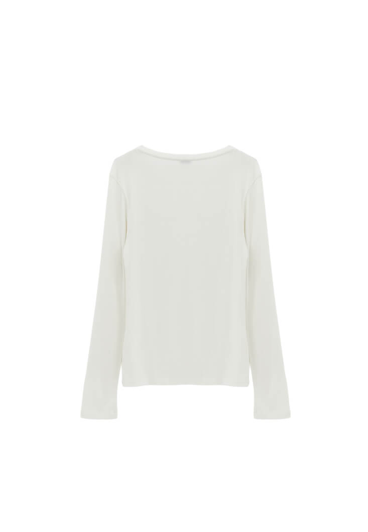 Krem Sıfır Yaka Uzun Kollu Tişört
