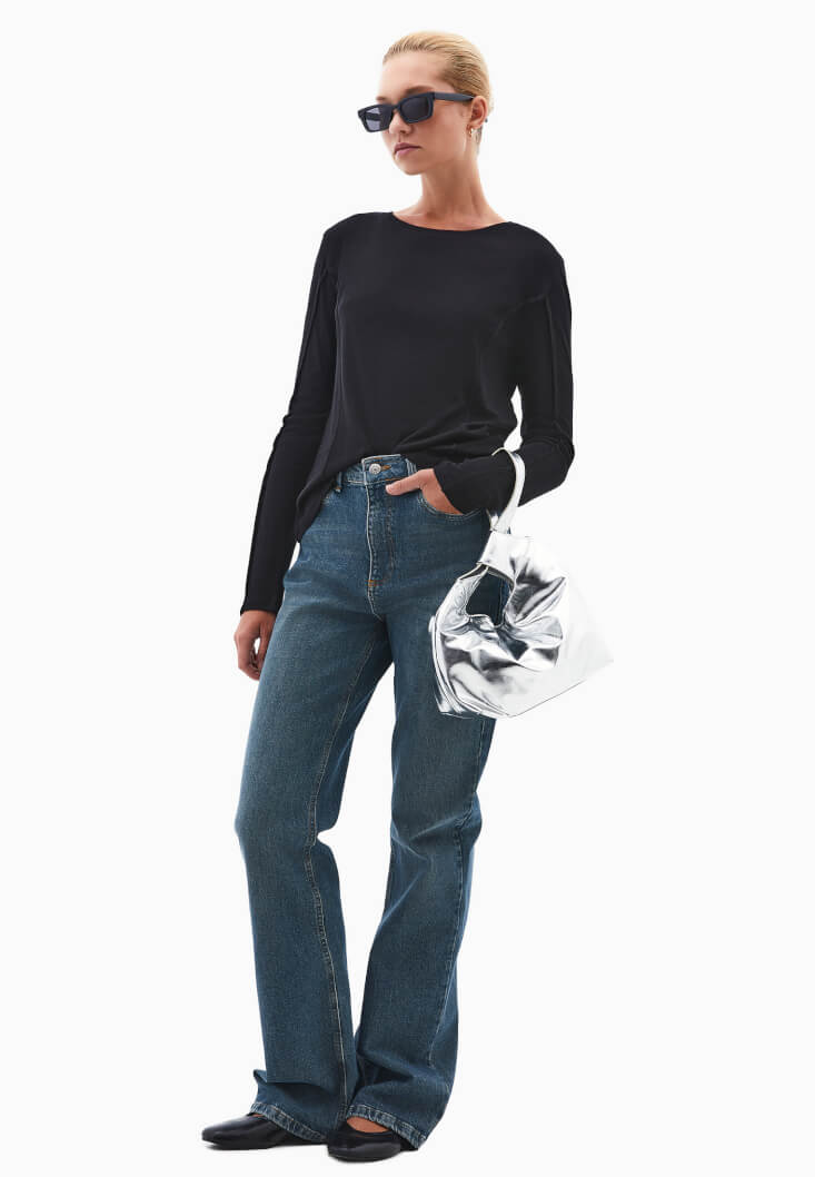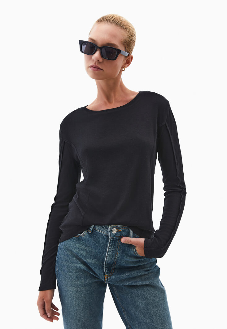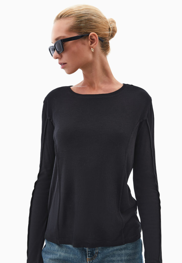 • Bayan Siyah Sıfır Yaka Uzun Kollu Tişört