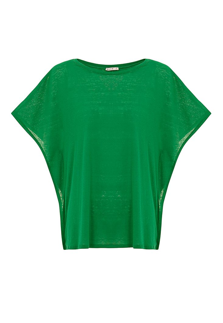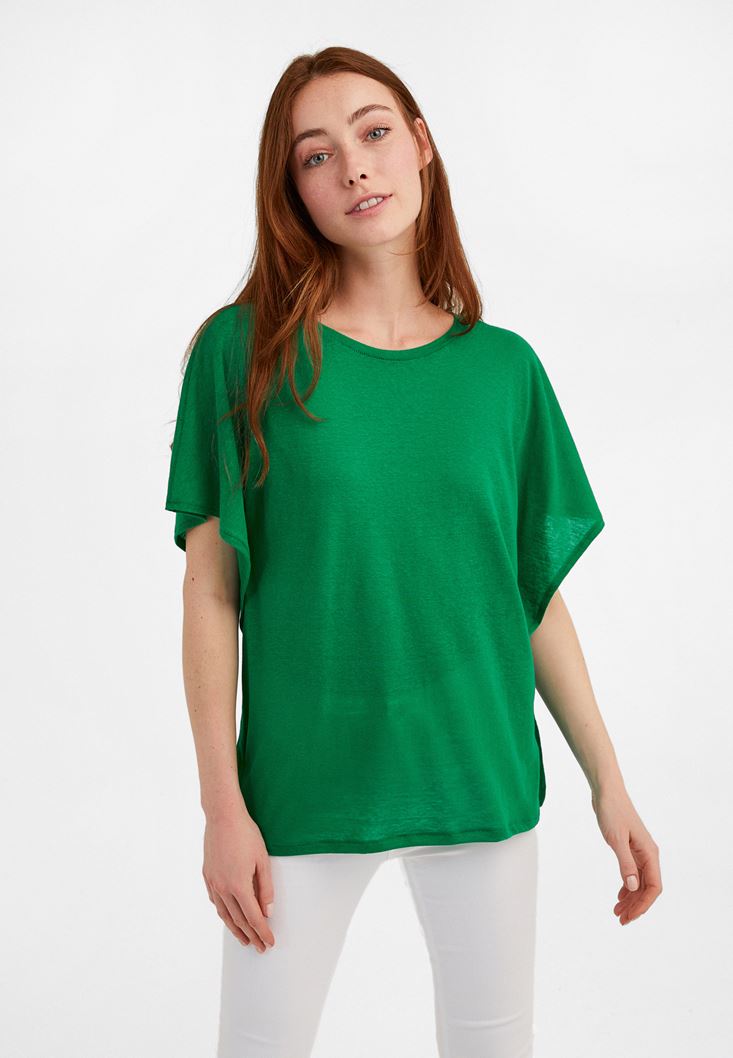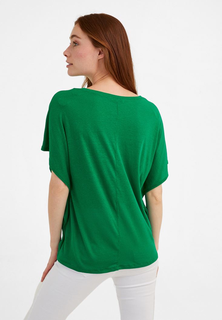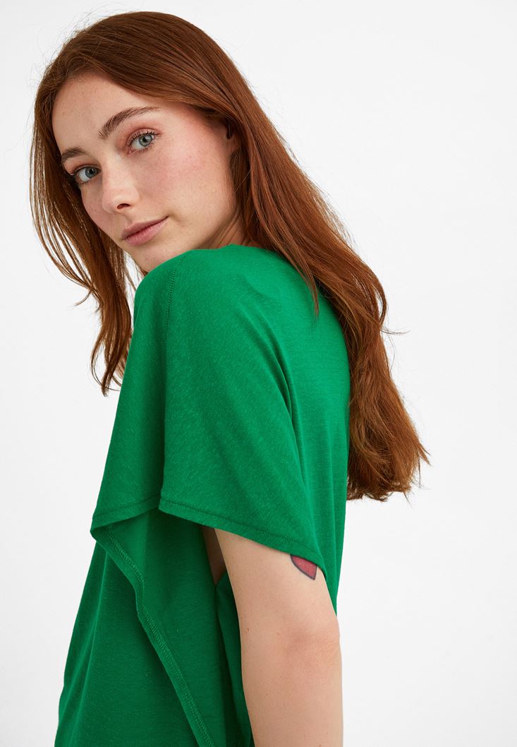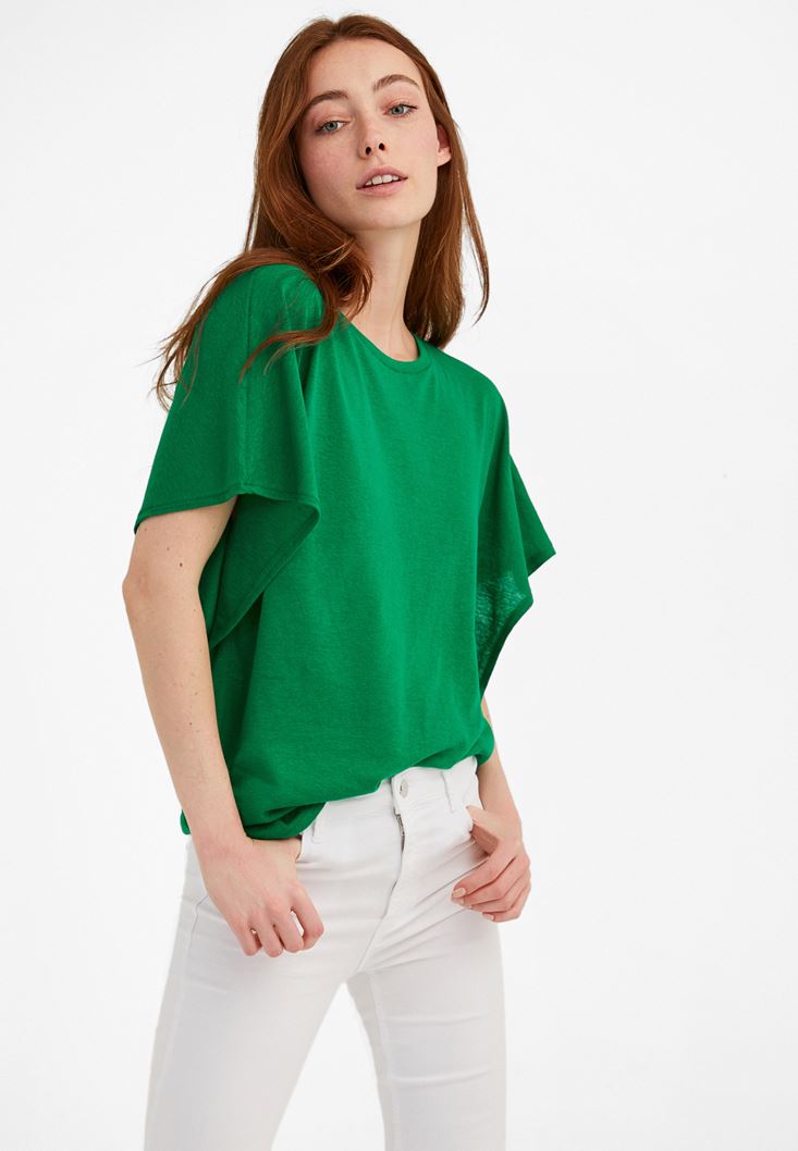 • Bayan Yeşil Sıfır Yaka Volanlı Tişört