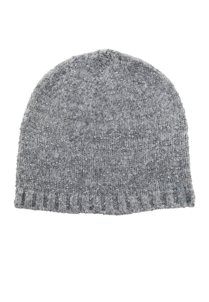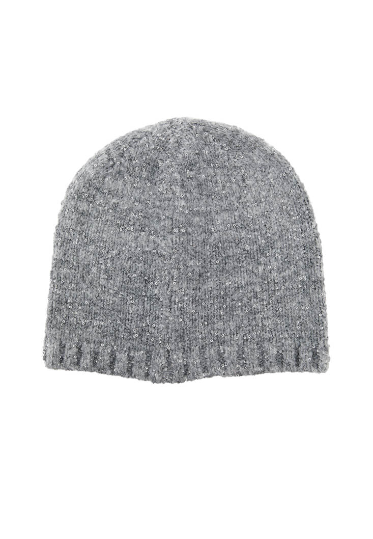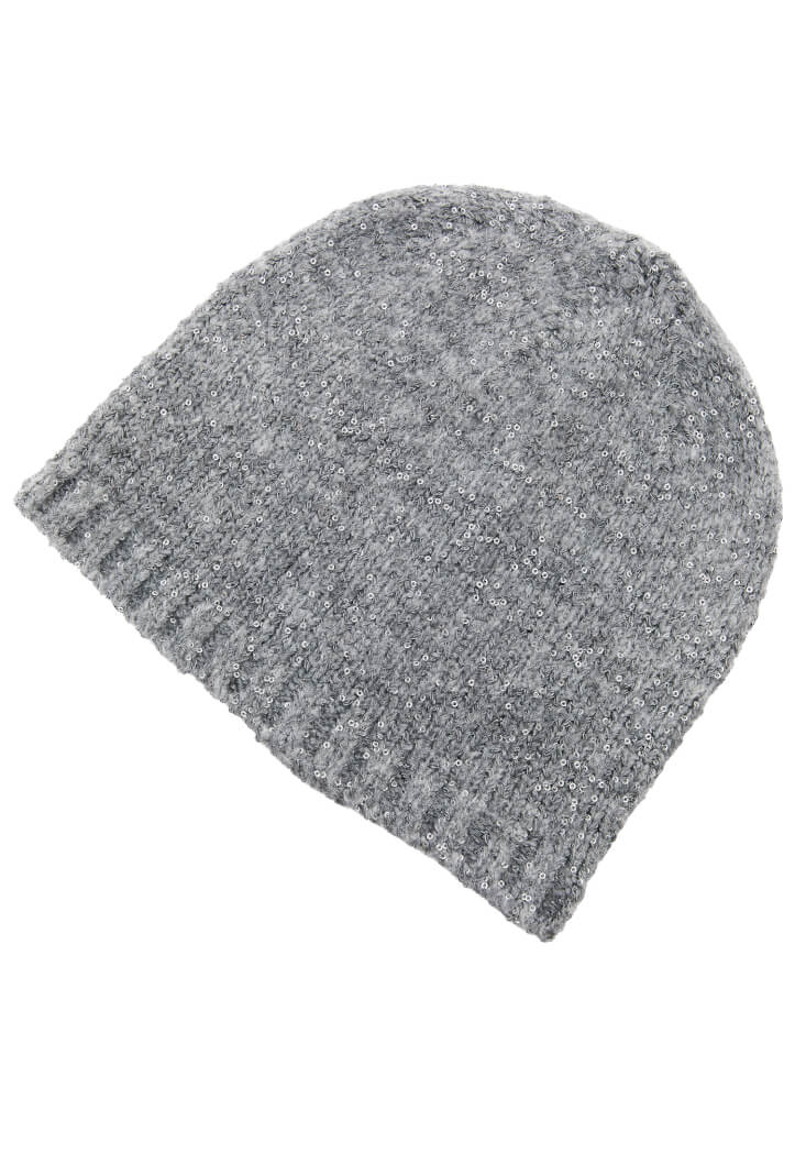 • Bayan Gri Sim Detaylı Bere