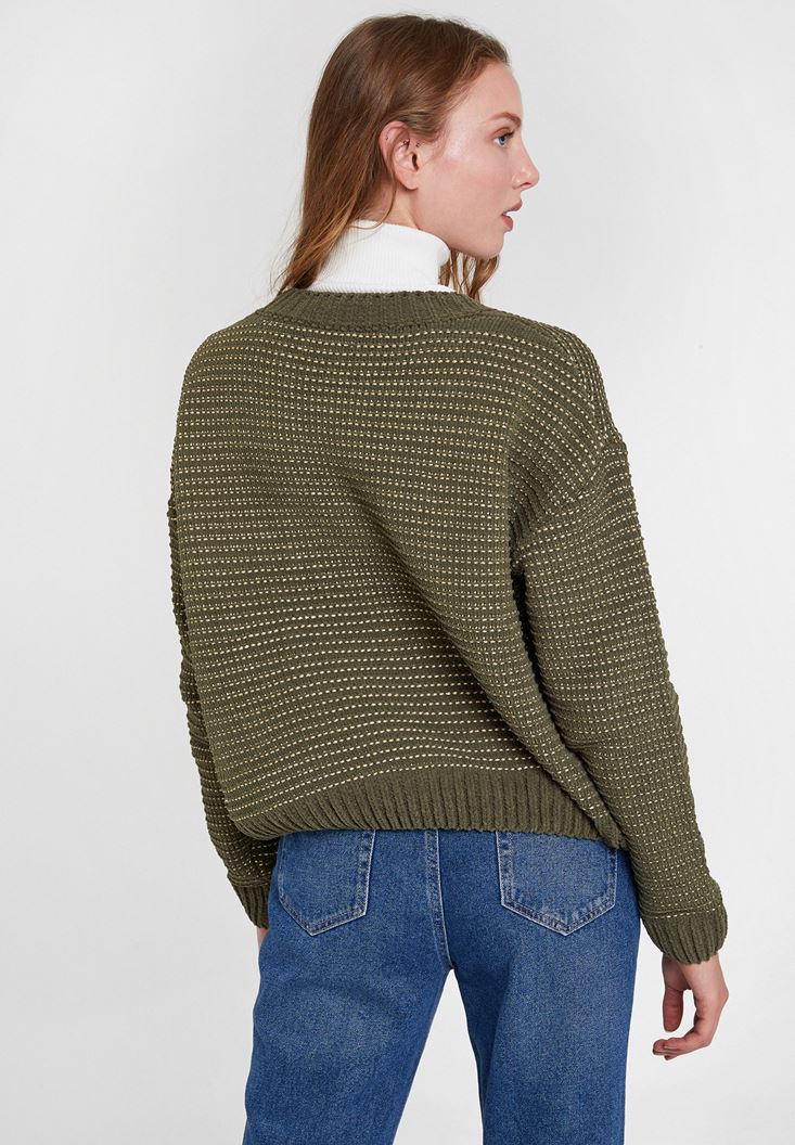 Çok Renkli Sim Detaylı Çizgili Triko