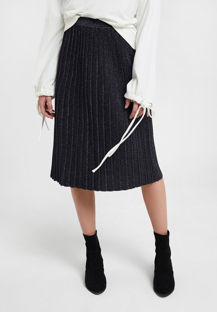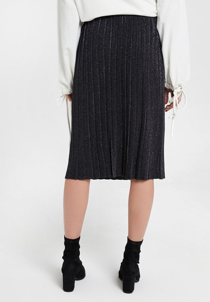 • Bayan Siyah Sim Detaylı Pilili Etek