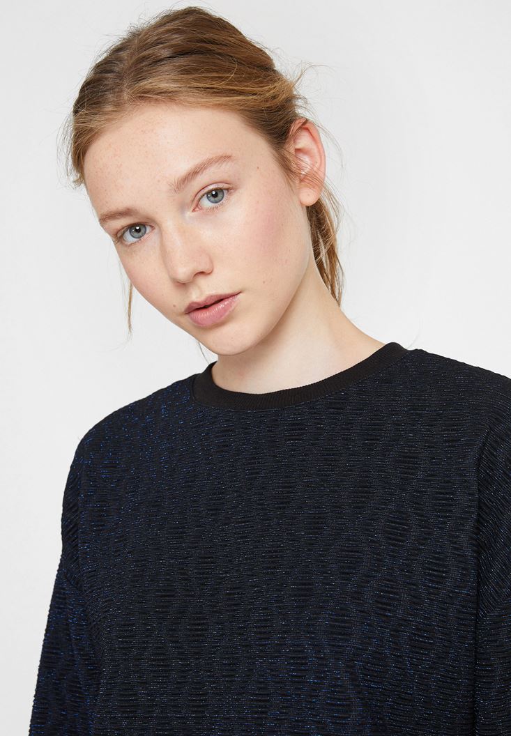 Sim Detaylı Sweatshirt modeli yumuşak dokusu, salaş kesimi ve zarif detayları ile günlük görünümü sade bir şıklık ile buluşturan konforlu sweatshirt modelleri arasında yer alıyor. Bisiklet yaka kesime sahip olan sweatshirt modeli kombinlerinizin her zaman rahat ve şık olmasına yardımcı olacak parçalardan birisi. Tasarımın kol kesiminde kullanılan lastik biye detaylar sayesinde sweatshirt modelinin dökümlü duruşun ön plana çıkıyor. Viskon lifinin yumuşak dokusu ve nefes alan yapısı sayesinde her zaman kullanmaktan keyif alacağınız parçalardan birisi olacak sweatshirt modeli kombinlerinizi keyifle tamamlayacağınız parçalardan birisi olacak. OXXO’nun özgür ruhunu yansıtan sweatshirt modeli ile en uzun günlerde bile hem konforlu hem de şık hissedeceksiniz.