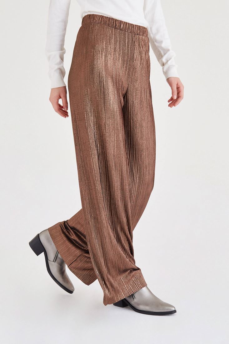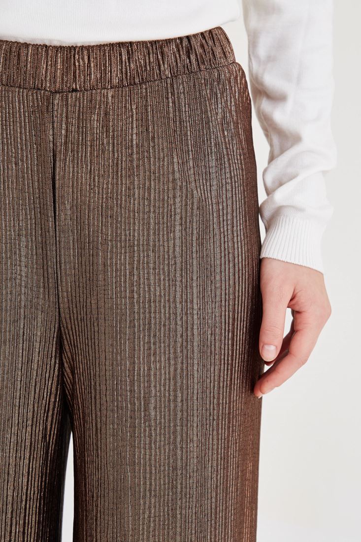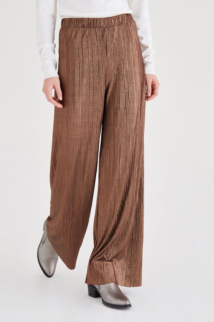 Metalik simli kumaslar bu sene moda dünyasina hizli bir giris yapti. OXXO tasarimcilari sen de bu tasarimlardan geri kalma diye çok trend olan bu akimi magazalara ve OXXO Online'a tasidi. Kaliteli kumasi ve tasarimi sayesinde çok rahat edecegin, metalik bol kesim pantolon modellerini bol kesim kazaklarla ve bot modelleri ile kombinleyebilirsin.