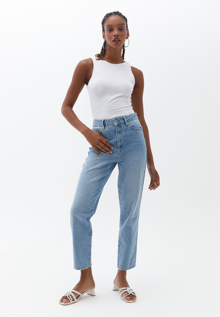 Viskon karışımlı esnek doku, sıfır yaka, sırt kısmı dekolteli, kalın askılı, bedeni saran rahat kalıp, fitilli doku.