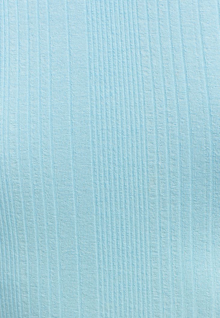 Viskon karışımlı esnek doku, sıfır yaka, sırt kısmı dekolteli, kalın askılı, bedeni saran rahat kalıp, fitilli doku.