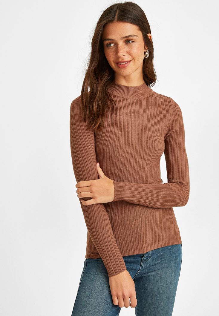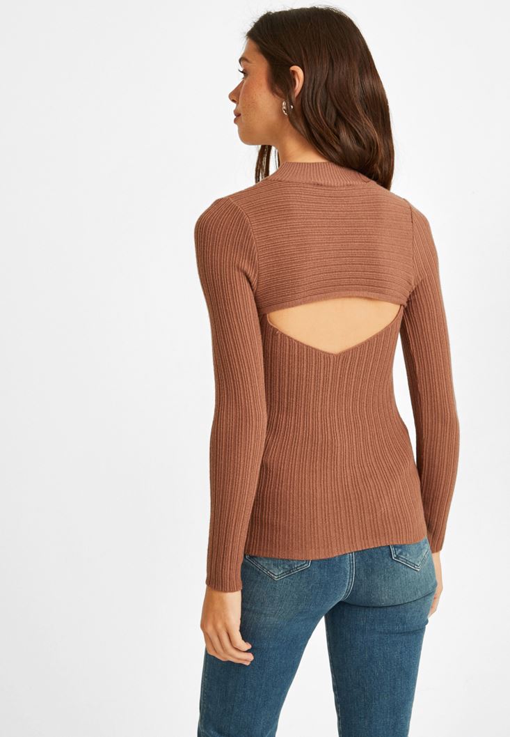 Kahverengi Sırt Dekolteli Kazak