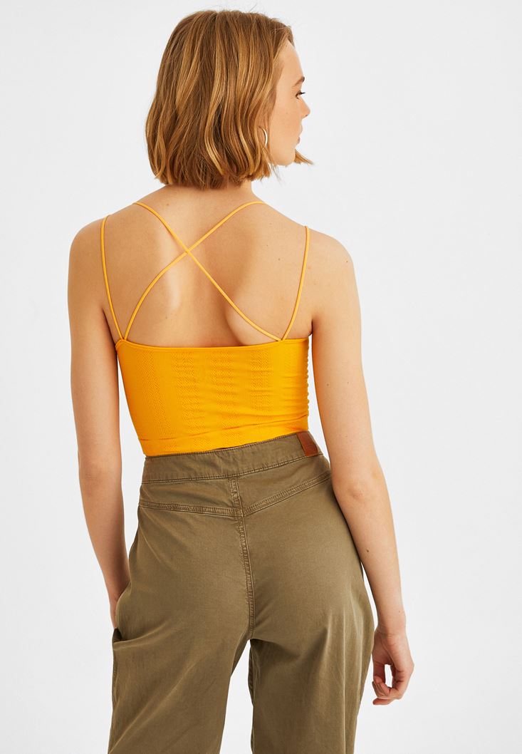 Sırt Detaylı Atlet modeli, yumuşacık dokusu ve ekstra esneklik sunan kumaşı ile yeni sezonda sizlerle buluşuyor. Crop atlet modeli, dikişsiz yapısı ve sırt kısmındaki çapraz askı detayı ile oldukça dikkat çekiyor. Yüksek belli jeanlerle veya mini şortlarla bir araya getirebileceğiniz kısa atlet modelini rahatlıkla kombinlerinize dahil edebilirsiniz. Crop atlet modelini oversize gömleklerle veya uzun kimonolarla kombinleyebilirsiniz. Oxxo'nun sıra dışı ayrıntılarla ve dikişsiz dokularla sizlere sunduğu kısa atlet modelleri ile tarzınıza farklılık katabilirsiniz.