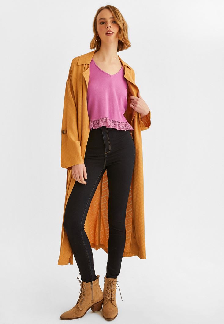 Dantel Detaylı Atlet modeli, viskon içerikli hoş dokusu ve zarif görünümü ile yeni sezona dahil oluyor. Kısa atlet modeli, V yaka kesimi ve sırt kısmında yer alan bağlama detayıyla Oxxo'da karşınıza çıkıyor. Dantel ayrıntısıyla da dikkat çeken kadın atlet modeli, tarzınıza zarafet katmanız için uygun bir seçenek olarak sizlerle buluşuyor. Kısa atlet modelini, jeanlerle veya mini eteklerle bir araya getirerek kombin oluşturabilirsiniz. Oxxo'nun benzersiz ayrıntılarla ve dokularla sizlere sunduğu kadın atlet modelleri ile tarzınızı dilediğiniz gibi yansıtabilirsiniz.