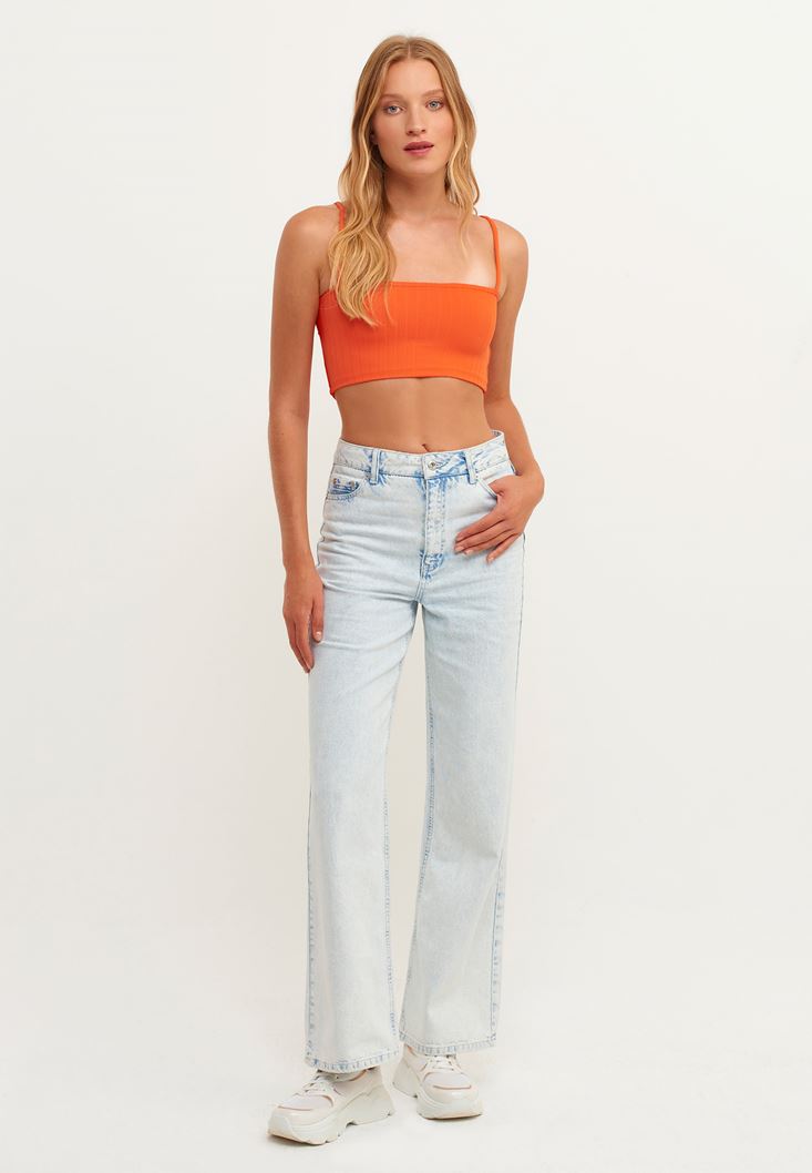 Turuncu Sırt Detaylı Crop Top