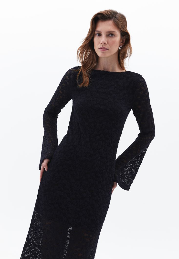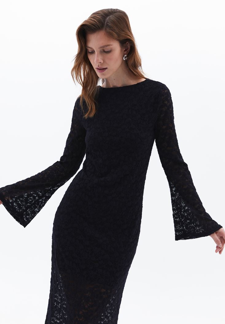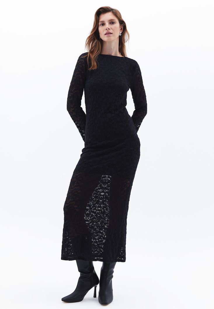 Sırt Detaylı Dantel Elbise ve Çizme Kombini