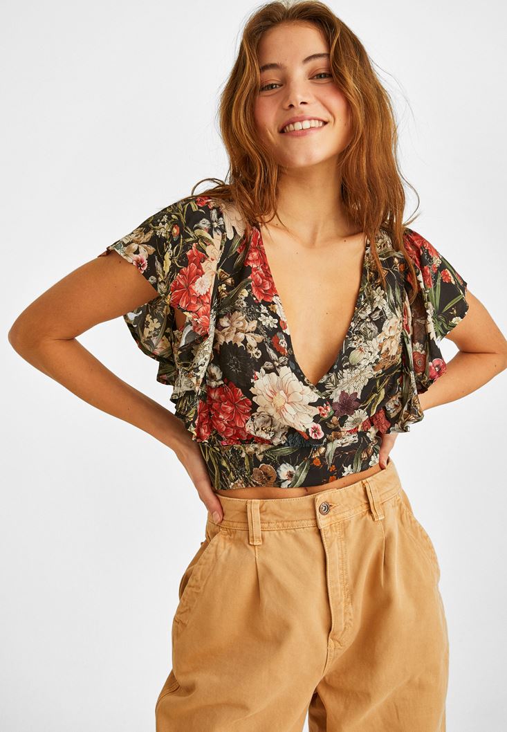 Sırt Detaylı Desenli Bluz modeli, viskon içerikli dokusunun yumuşaklığı ile yeni sezonda sizlerle buluşuyor. kadın bluz modeli, belden oturan kalıbı, kol kesimindeki volanlar ve kruvaze yaka detayı ile sizlere sunuluyor. Crop bluz modeli, renkli çiçek desenleri ve sırt kısmındaki bağcık ayrıntıları ile oldukça dikkat çekiyor. kadın bluz modelini günlük kombinlerinizin yanı sıra, özel davetlerde de güçlü tarzlara ulaşmak için kullanabilirsiniz. Crop bluz modeli ile yüksek belli pantolonlar veya mini etekler tercih ederek feminen detaylar elde edebilirsiniz. kadın bluz modelinin yer alacağı hoş kombinleri topuklu ayakkabılarla veya botlarla tamamlayabilirsiniz. Oxxo'nun hoş desenlerle ve farklı görünümlerle sizlere sunduğu kadın bluz modelleri ile stilinize yön verebilirsiniz.