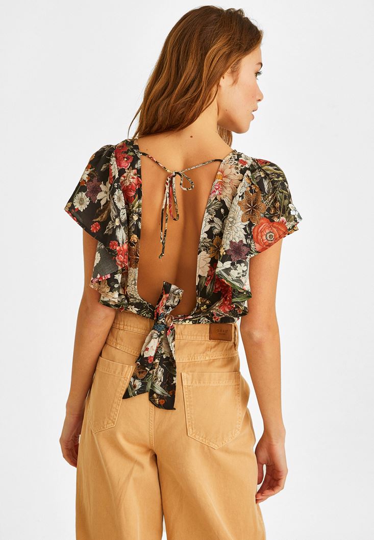 Çok Renkli Sırt Detaylı Desenli Bluz