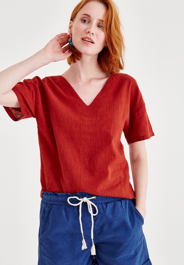 Oxxo Sırt Detaylı Keten Bluz 2075853090