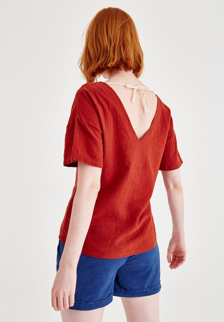 • Bayan Bordo Sırt Detaylı Keten Bluz