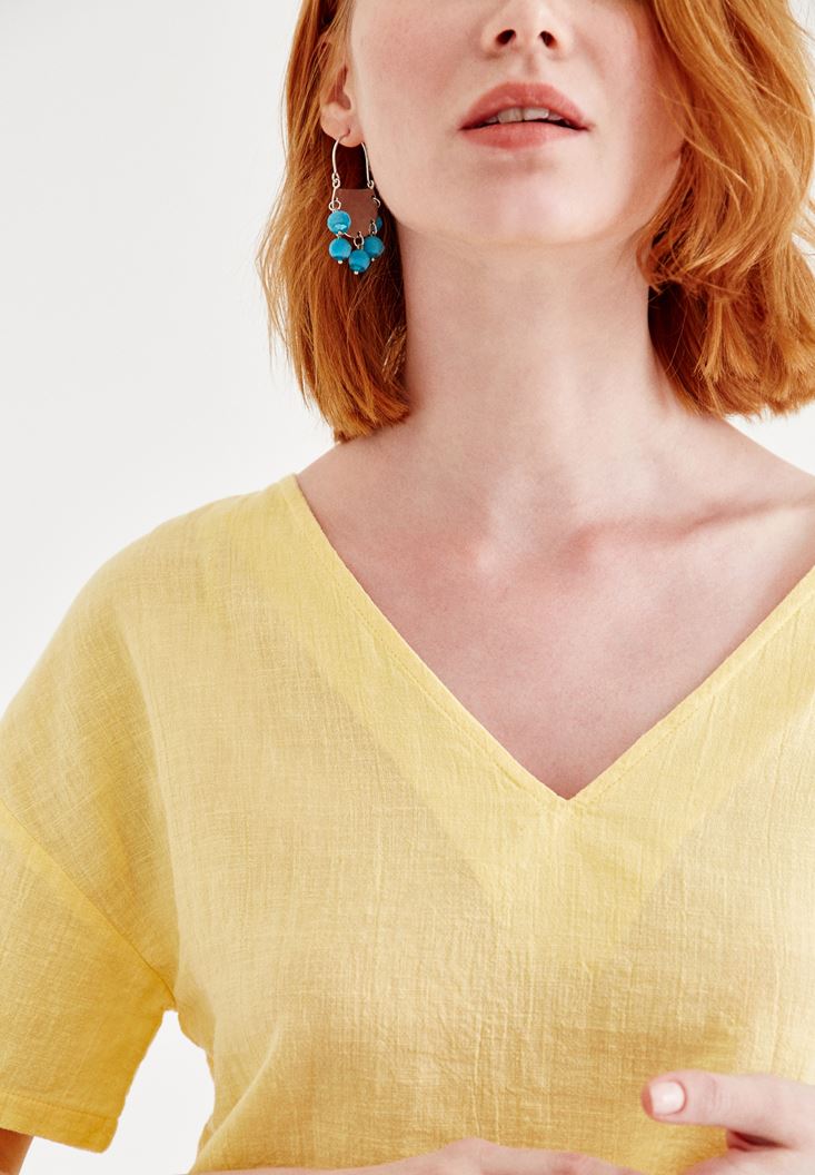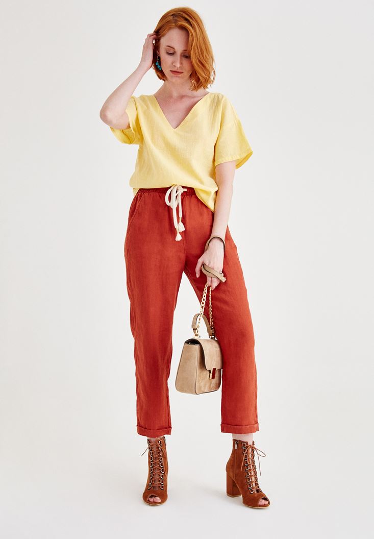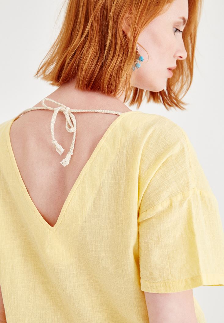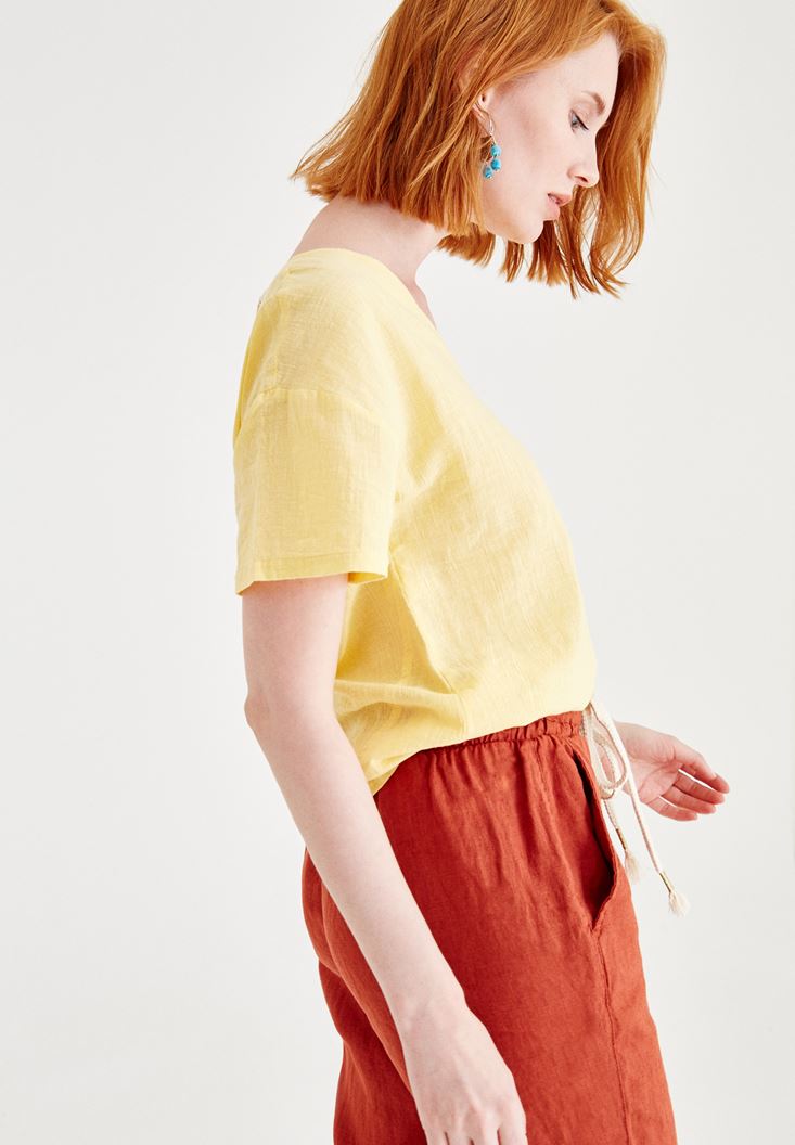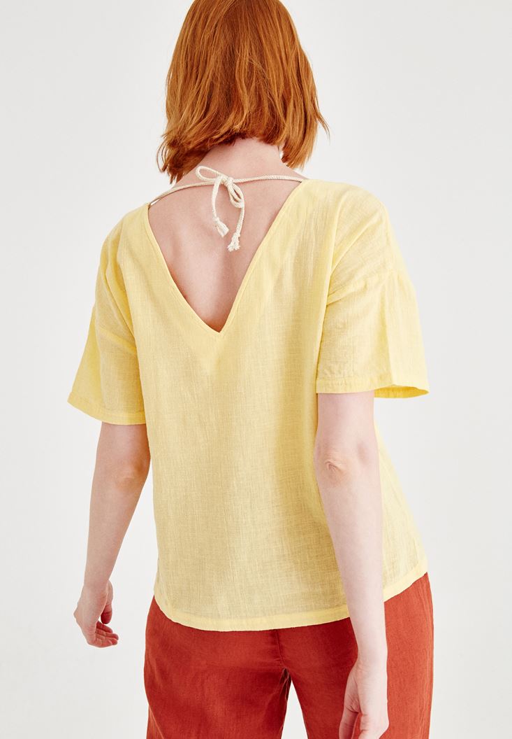 • Bayan Sarı Sırt Detaylı Keten Bluz
