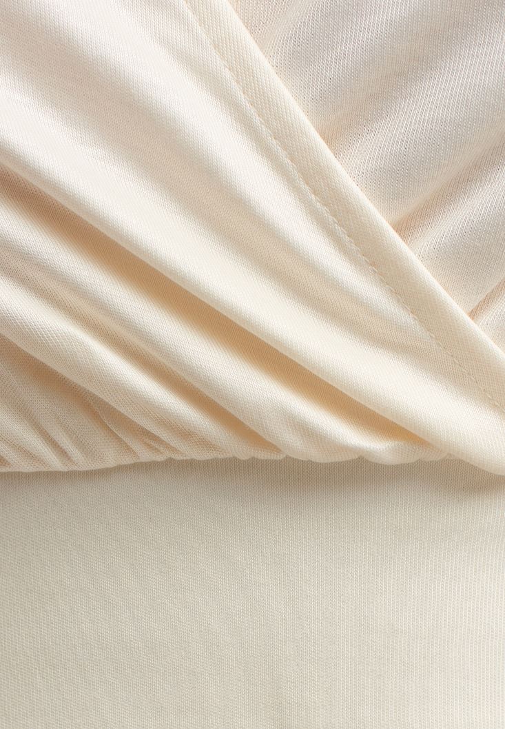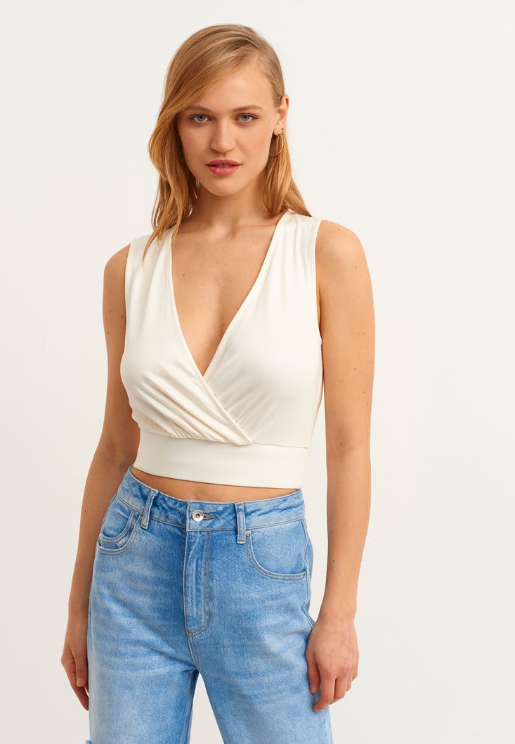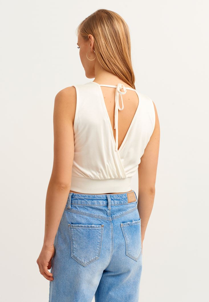 Krem Sırt Detaylı Kruvaze Crop Bluz
