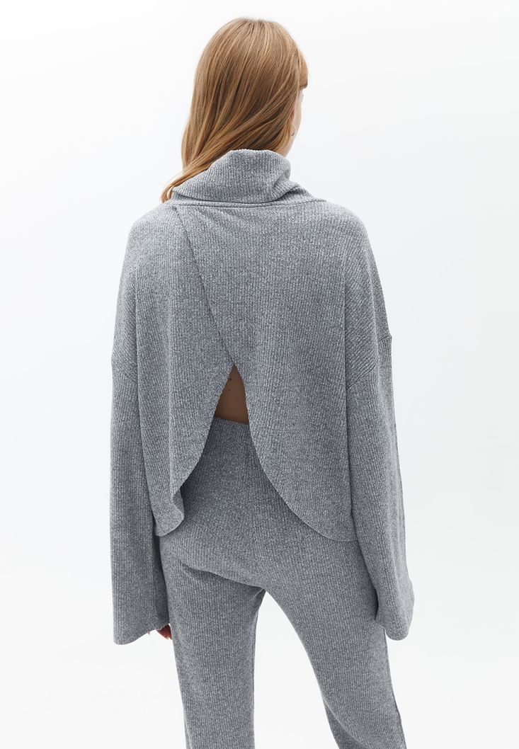 • Bayan Gri Sırt Detaylı Triko Kazak