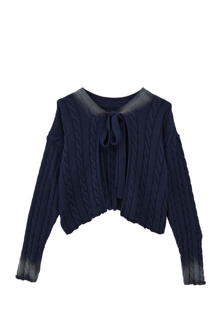 Pamuk karışımlı içerik, saç örgüsü detaylı, sıfır yaka, uzun kollu, yakası ve kol ucu yıkama detaylı, crop kesim, sırt kısmı bağcıklı.