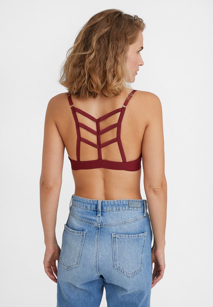 Bordo Sırt Detaylı Üçgen Büstiyer