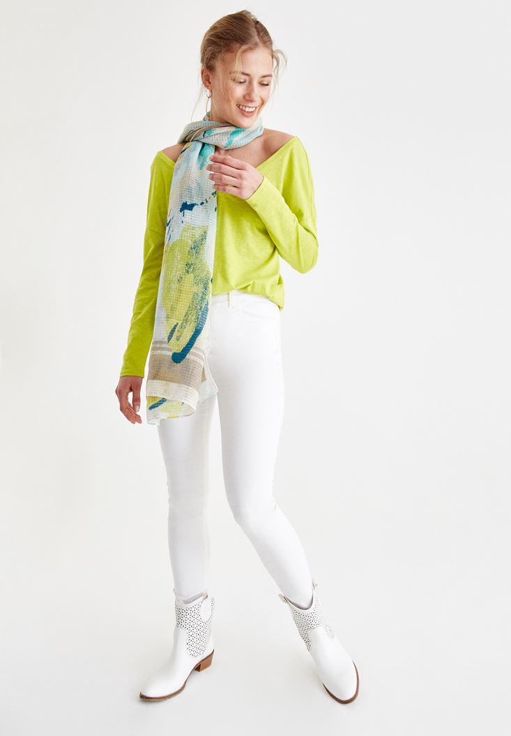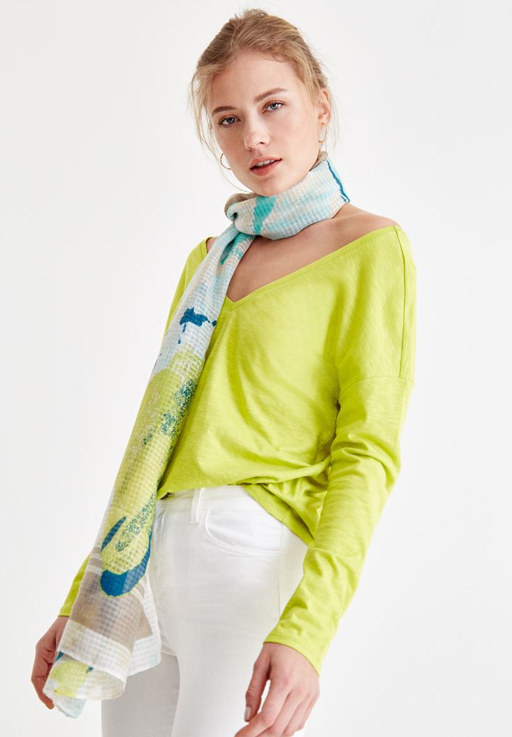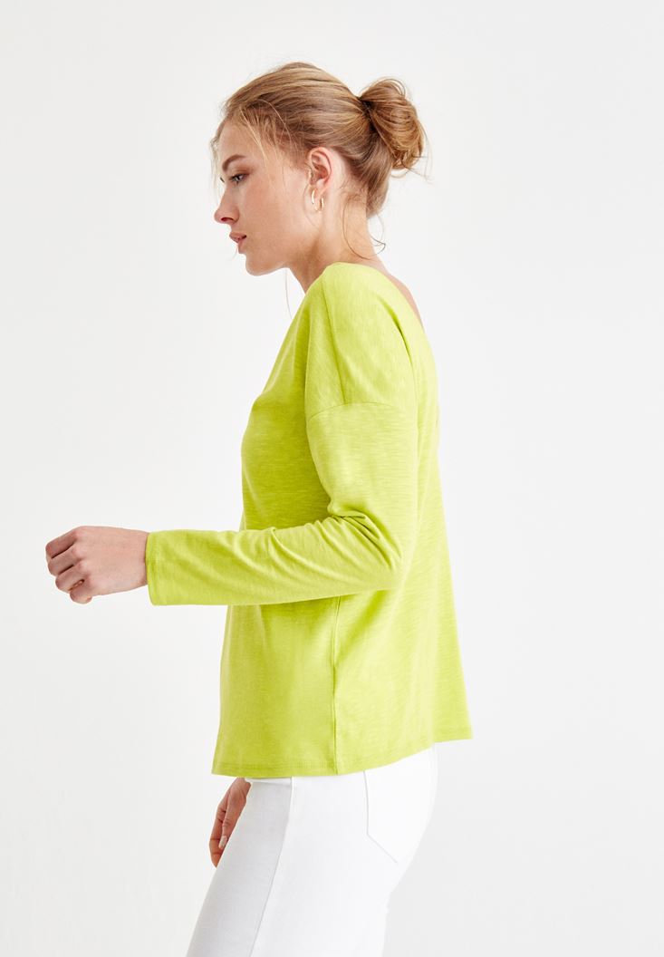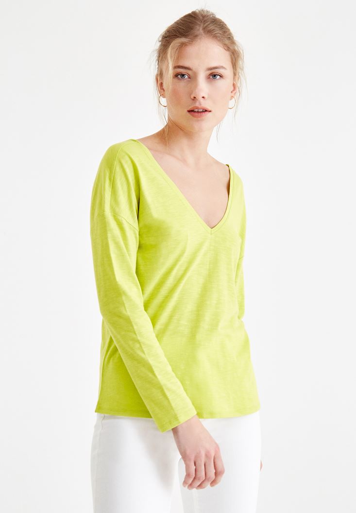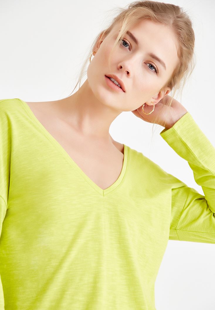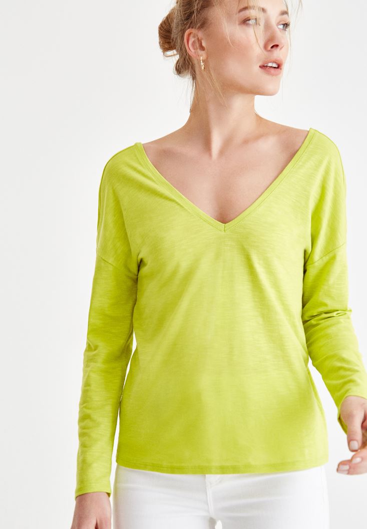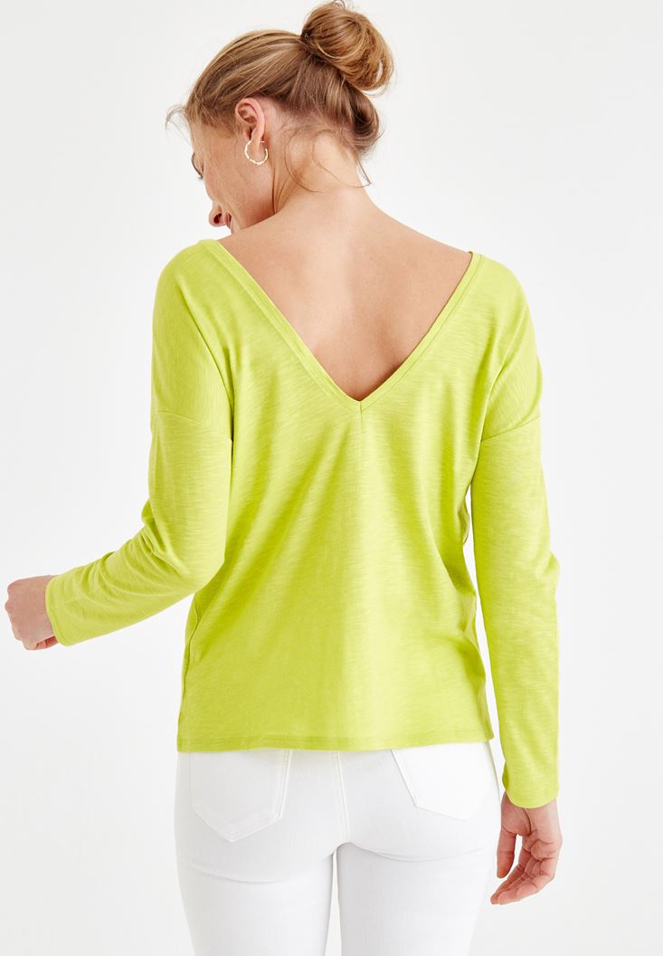 Yeşil Sırt Detaylı V Yaka Tişört