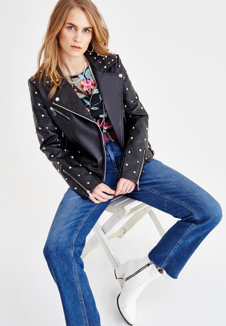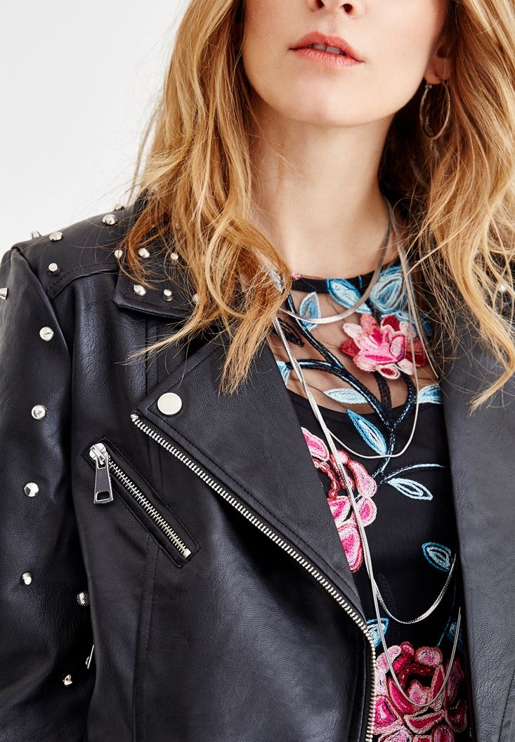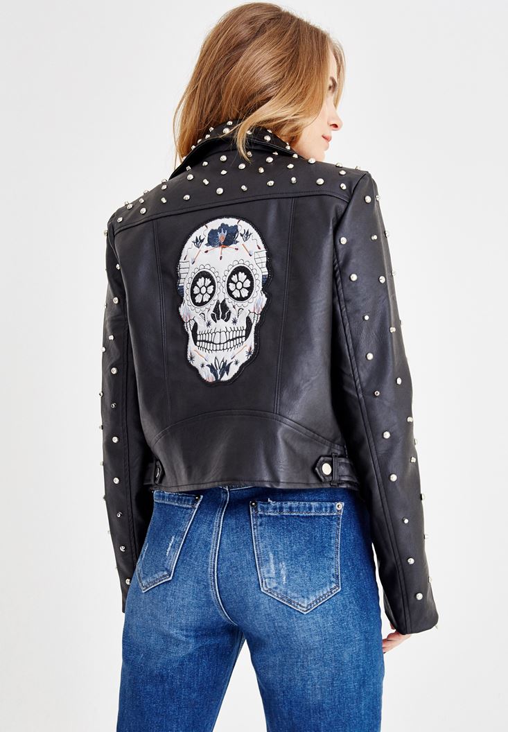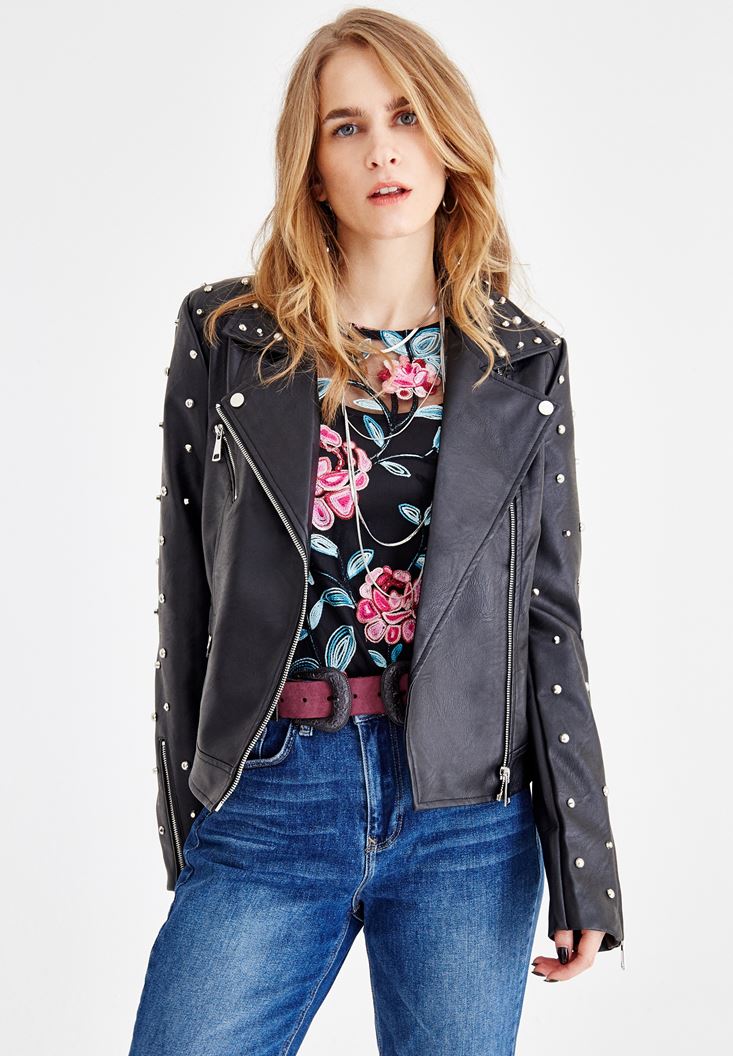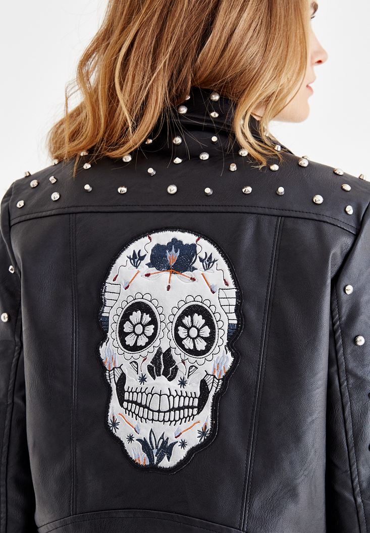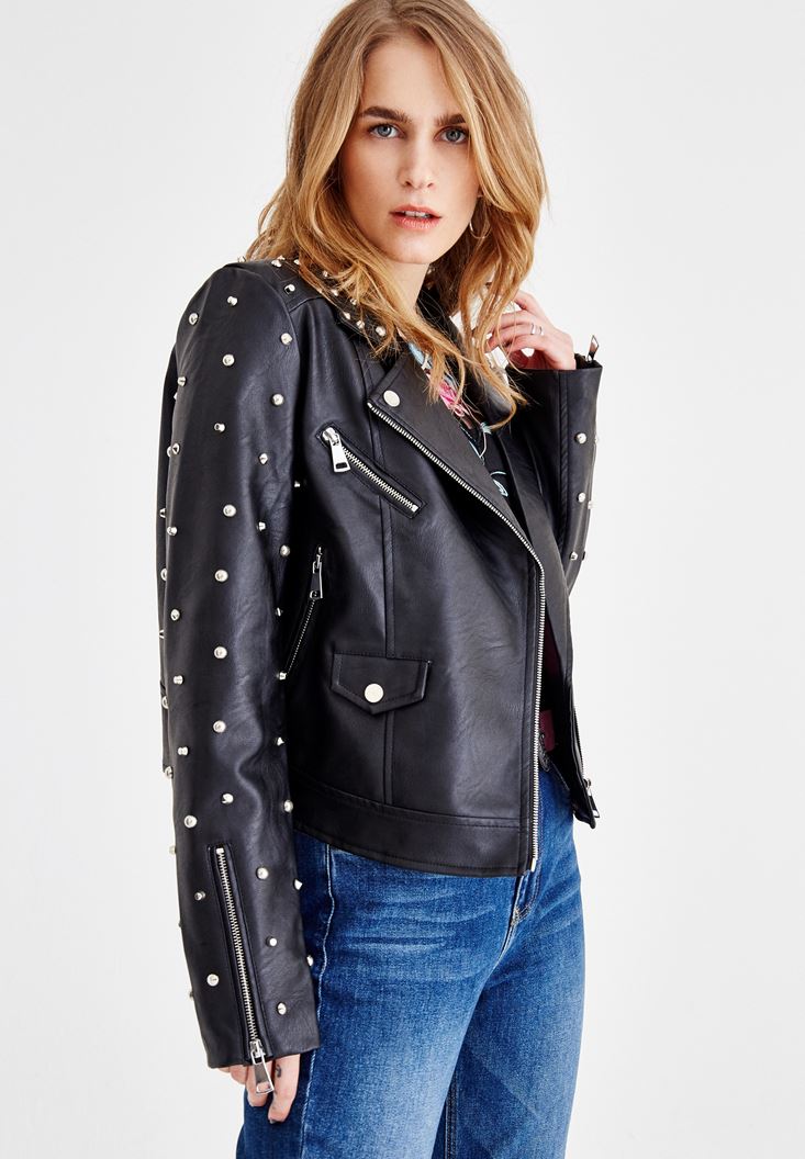 Siyah Sırt Detaylı Zımbalı Ceket