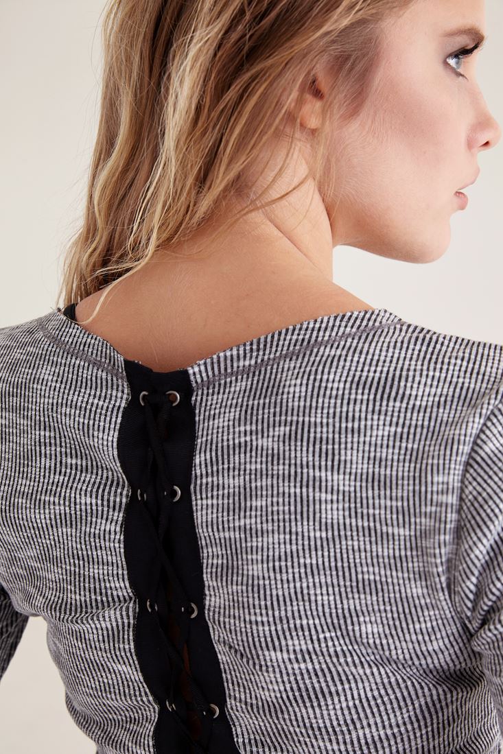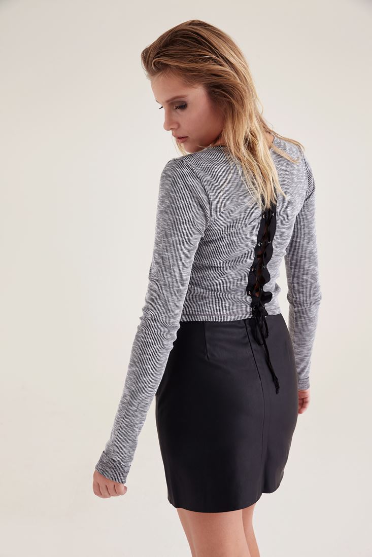 Gri Sırtı Bağcık Detaylı Kısa Üst