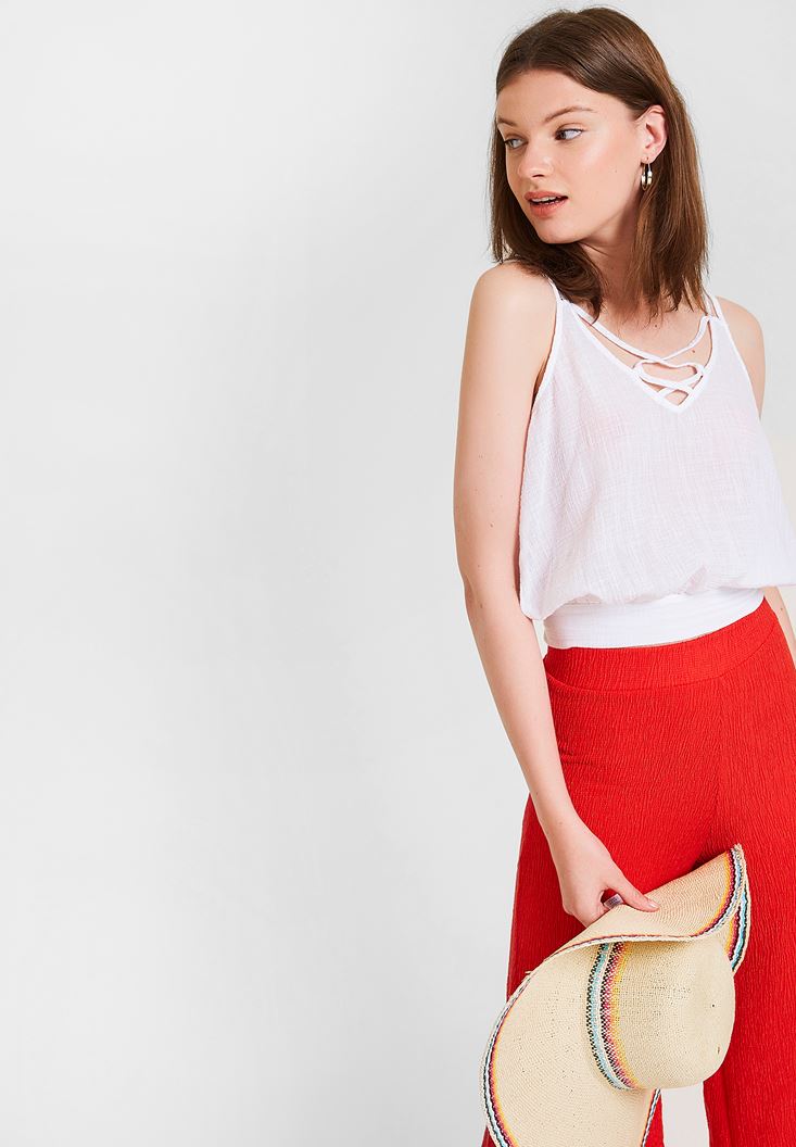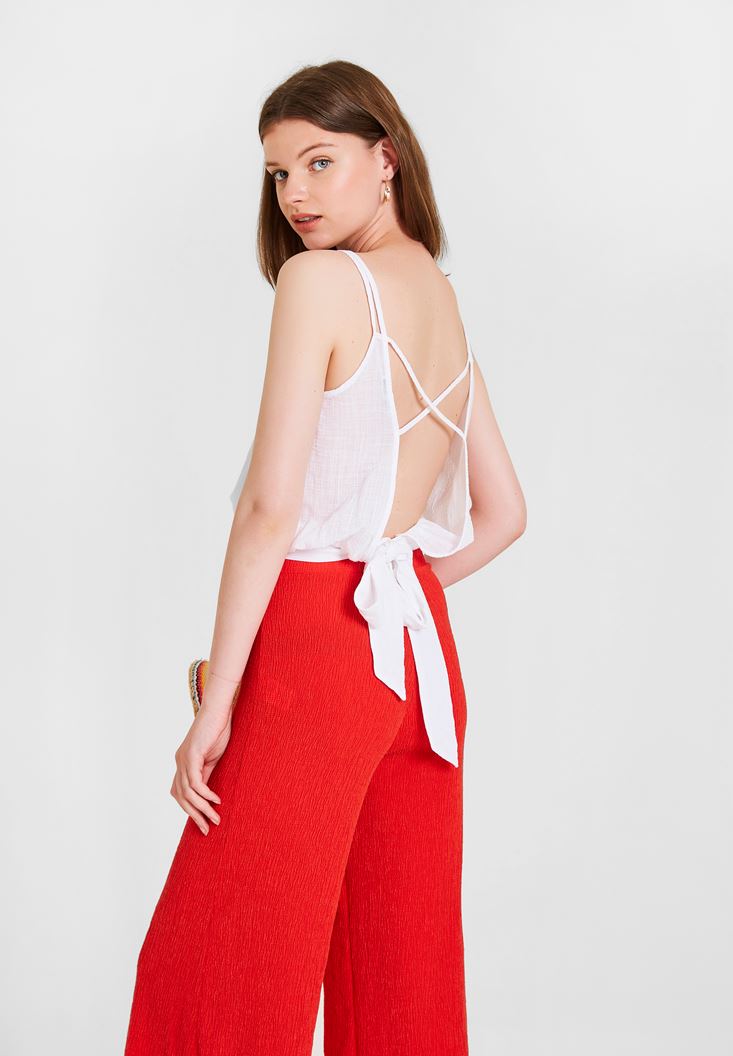 • Bayan Beyaz Sırtı Bağlama Detaylı Bluz