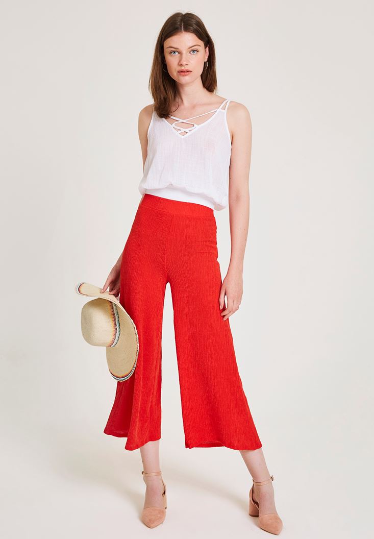 Sirti Baglama Detayli Bluz modeli yumusak dokusu, dökümlü kesimi ve dikkat çeken tasarim detaylari ile hem iddiali hem de konforlu kombinler yapmaniza olanak saglayacak bluz modelleri arasinda yer aliyor. Genis yaka kesimi, kendinden dokulu kumasi ve zarif detaylari ile öne çikan bluz modelinin yaka kesiminde kullanilan çapraz ip detaylar tasarimin enerjisini yükseltiyor. Yakadan askilara dogru devam eden bant detaylar sirt kesiminde de kullaniliyor. Sirti tamamen açik olan ve bel bölgesinden baglanan bluz modeli sahip oldugu dokusu ile de dikkatinizi çekmeyi basaracak. Pamuk dokunun nefes alan yapisi ve yüksek nem emiciligi ile uzun süreli kullanimda konfor sunan tasarim, OXXO'nun dokulardan aldigi ilhami yansitan parçalarindan birisi.