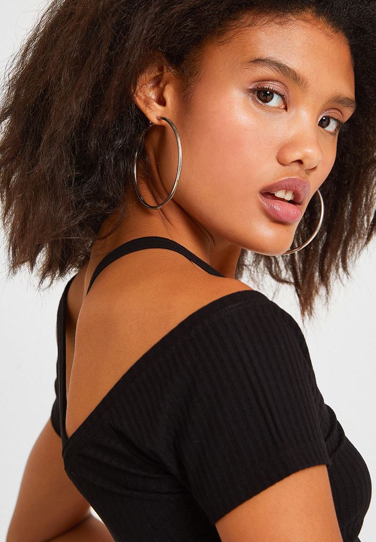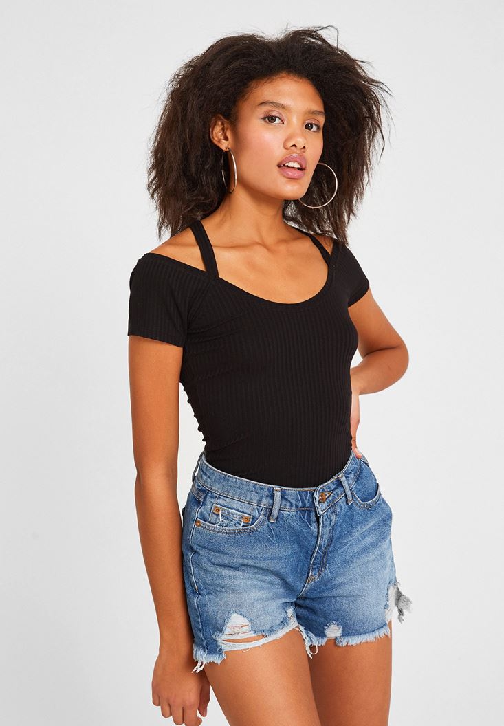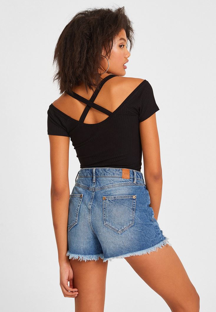 • Bayan Siyah Sırtı Biye Detaylı Tişört