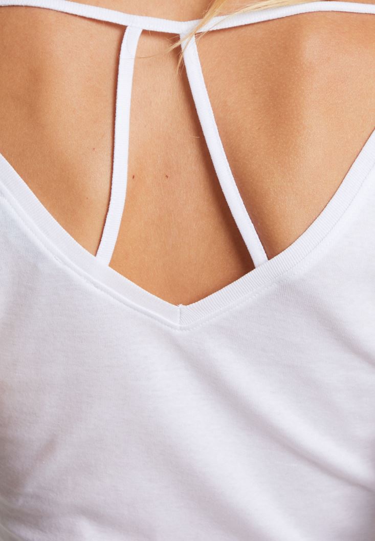 • Bayan Beyaz Sırtı Biye Detaylı V Yaka Tişört