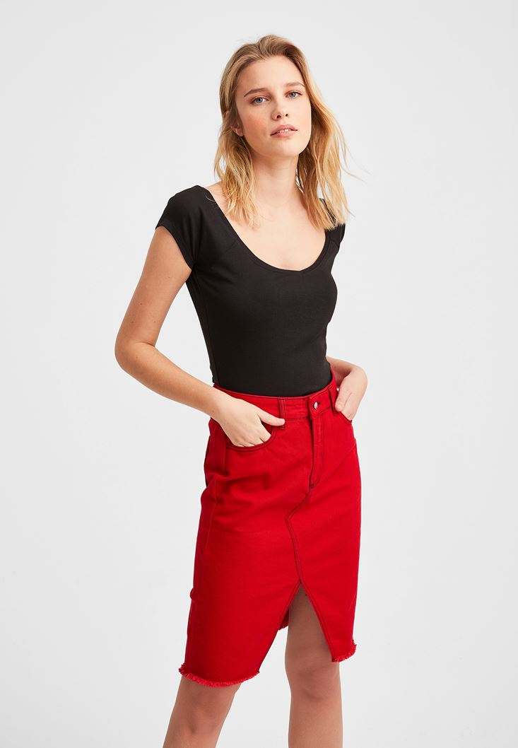 Sirti Biye Detayli V Yaka Tisört modeli sahip oldugu dökümlü kesimi ve zarif detaylari ile kombinlerinizde her zaman kullanmaktan keyif alacaginiz parçalardan birisi olacak. Derin V yaka kesimi ile zarif bir boyun dekoltesini ön plana çikaran tisört modeli bu dekolte sayesinde farkli boyun aksesuarlari ile birlikte kullanilabiliyor. Sirt kesiminde de yaka kesimi ile simetrik bir dekoltenin yer aldigi tasarimda sirt dekoltesini 3 parçaya bölen biye detaylar tasarima zarif ve enerjik bir görünüm kazandiriyor. Vücudu basarili bir sekilde saran tasarimi ile jean pantolon, sort, etek gibi farkli parçalarla birlikte dikkat çekici kombinlere sahip olmaniza yardimci oluyor. Pamuk dokusu ile konforlu bir kullanim hissi sunan tisört modelleri arasinda yer alan tasarim, OXXO’nun sadelikten ilhami yansitiyor.