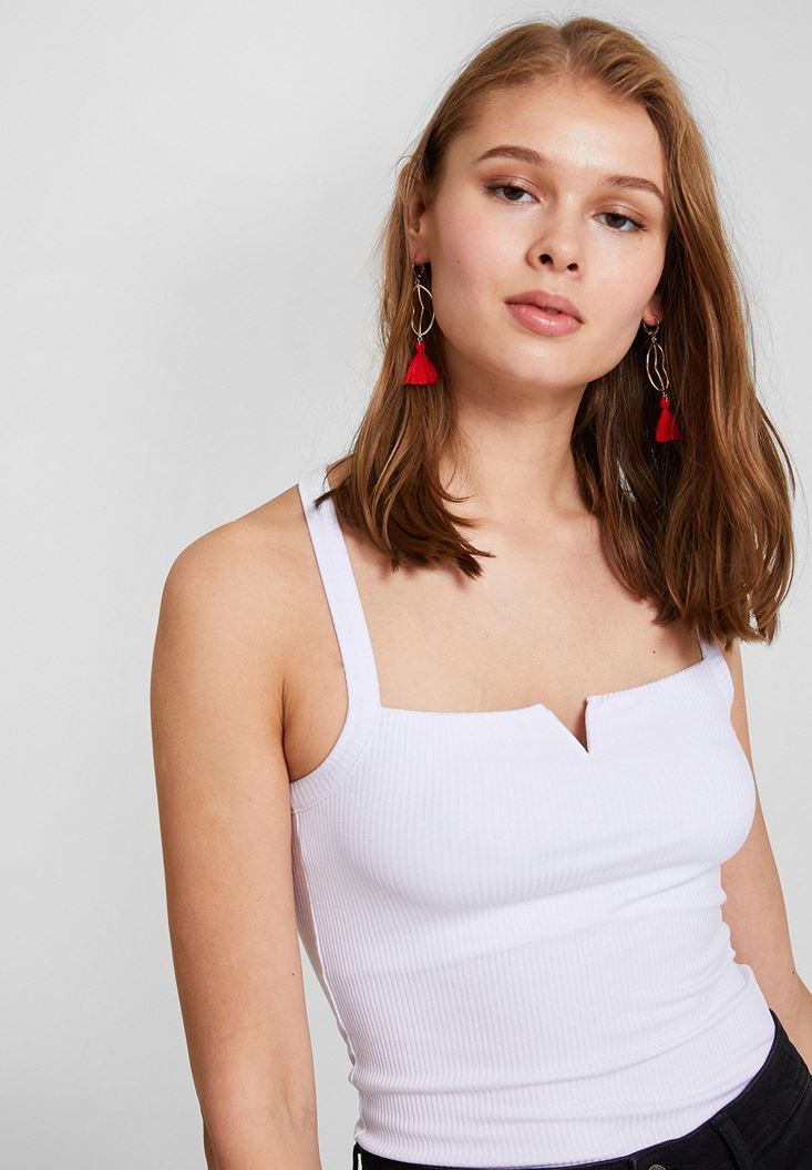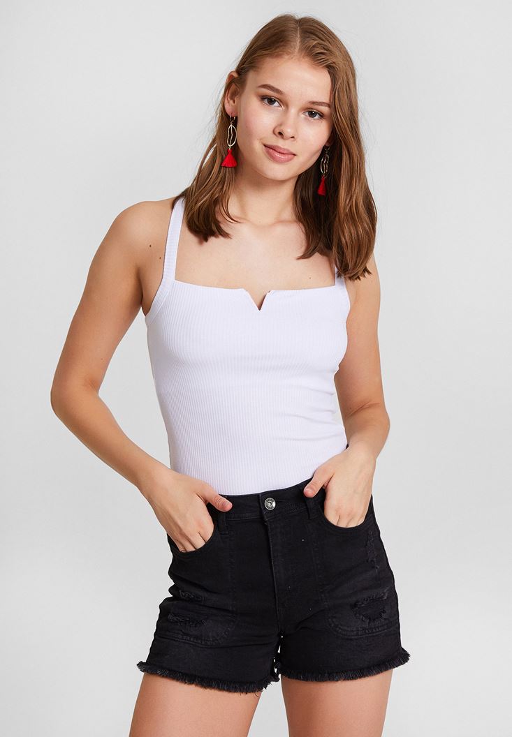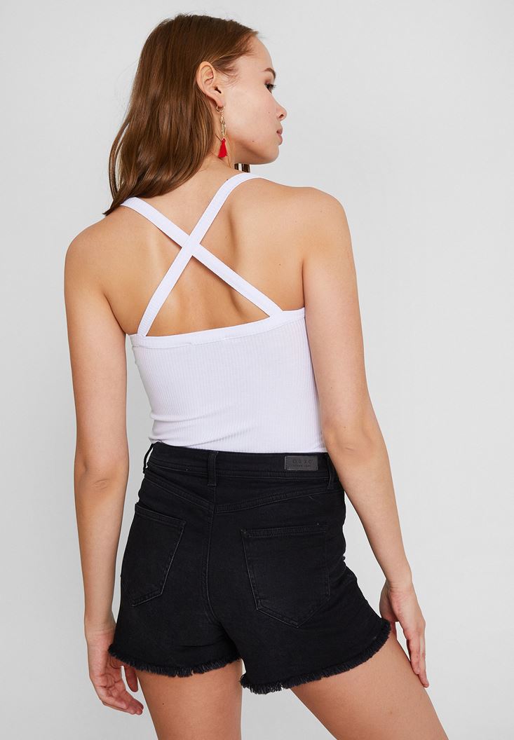 Beyaz Sırtı Çapraz Askılı Bluz